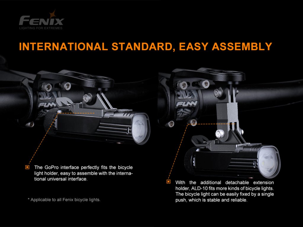 Adaptér Fenix ALD-10 slouží k uchycení cyklosvětel Fenix do GoPro montáži. Ať už používáte GoPro montáž na řídítkách, helmě či někde jinde, tak díky redukci Fenix ALD-10 můžete od nynějška v těchto montážích používat i cyklosvětla Fenix.