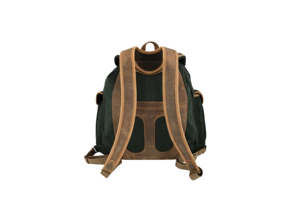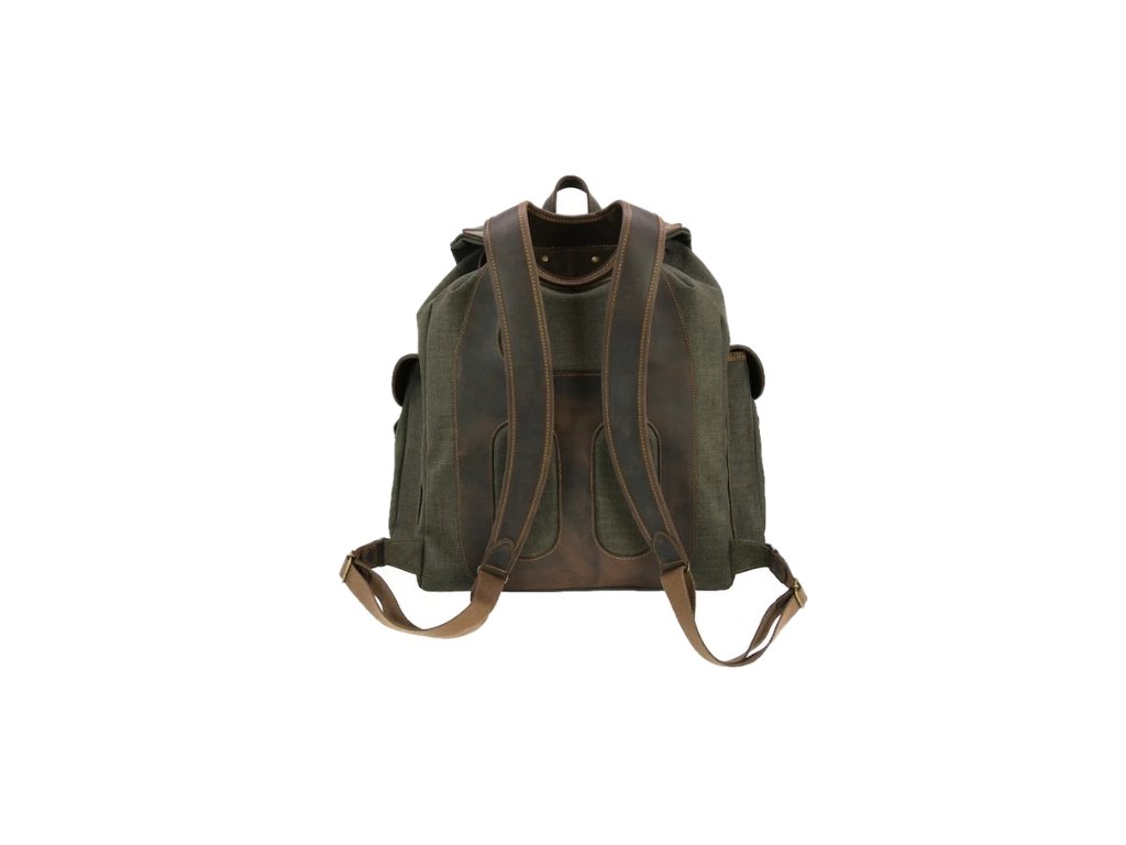 Batoh s voděodolnou úpravou, ručně dokončený, do detailů vypracovaný, pevně ušitý, kůže s efektem telecí. Je kompletně podšit pratelným prodyšným materiálem, se třemi vnějšími kapsami, dvěma vnitřními a polohovatelnými ramenními pásy s neoprenem.
