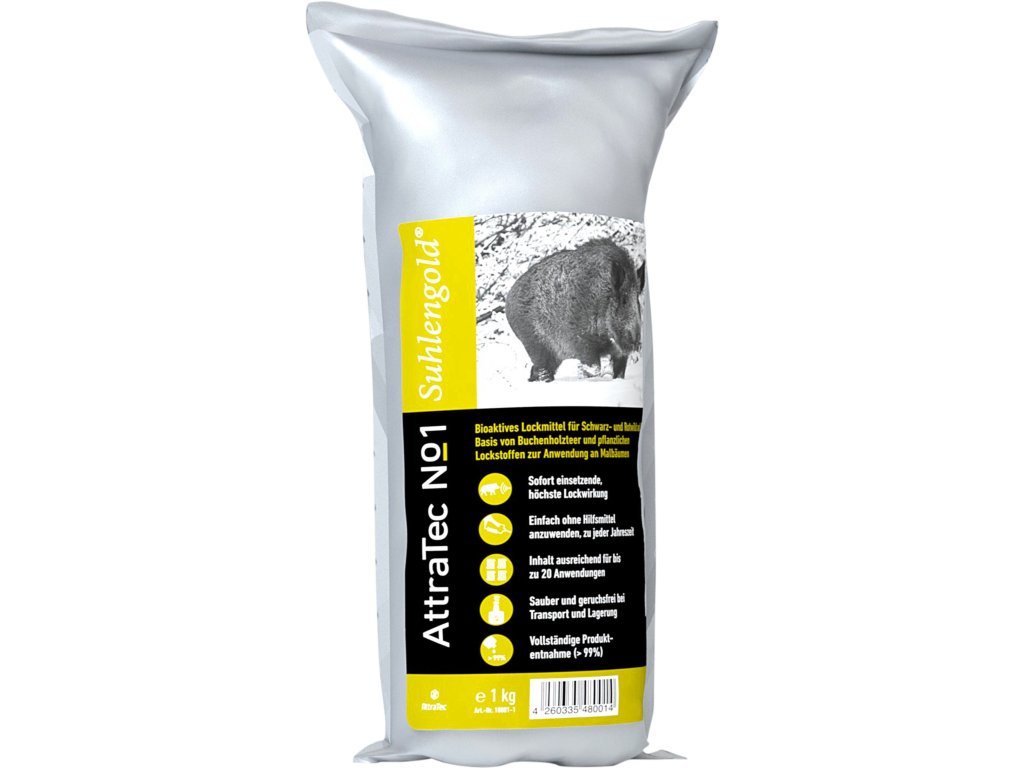 Attratec No 1 Suhlengold je prípravok na vnadenie diviačej a jelenej zveri. Obsahuje bukový decht a rastlinné vnadidlá. Aplikácia do blízkosti bahniska alebo na otierací strom sa vykonáva priamo z fľaše, odpadá zdĺhavé natieranie štetcom. Obsah fľaše postačuje na maximálne 20 aplikácií.