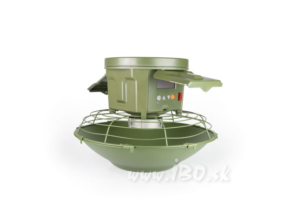 Nastavování intervalů a počet vteřin, jak často bude podavač aktivně rozhazovat krmivo je velmi rychlé a snadné. V dolní části podavače se nachází trychtýř, který odvádí nadbytečné krmivo směrem dolů.