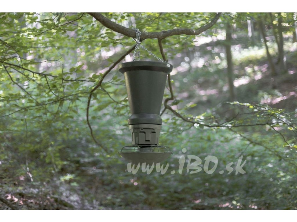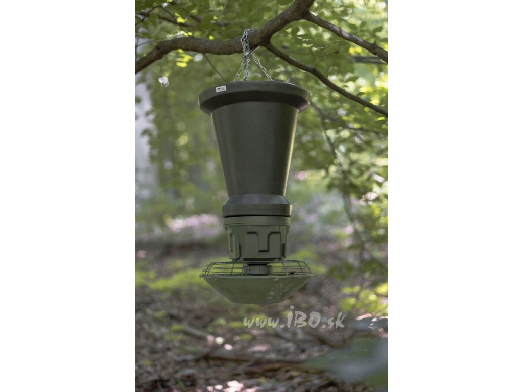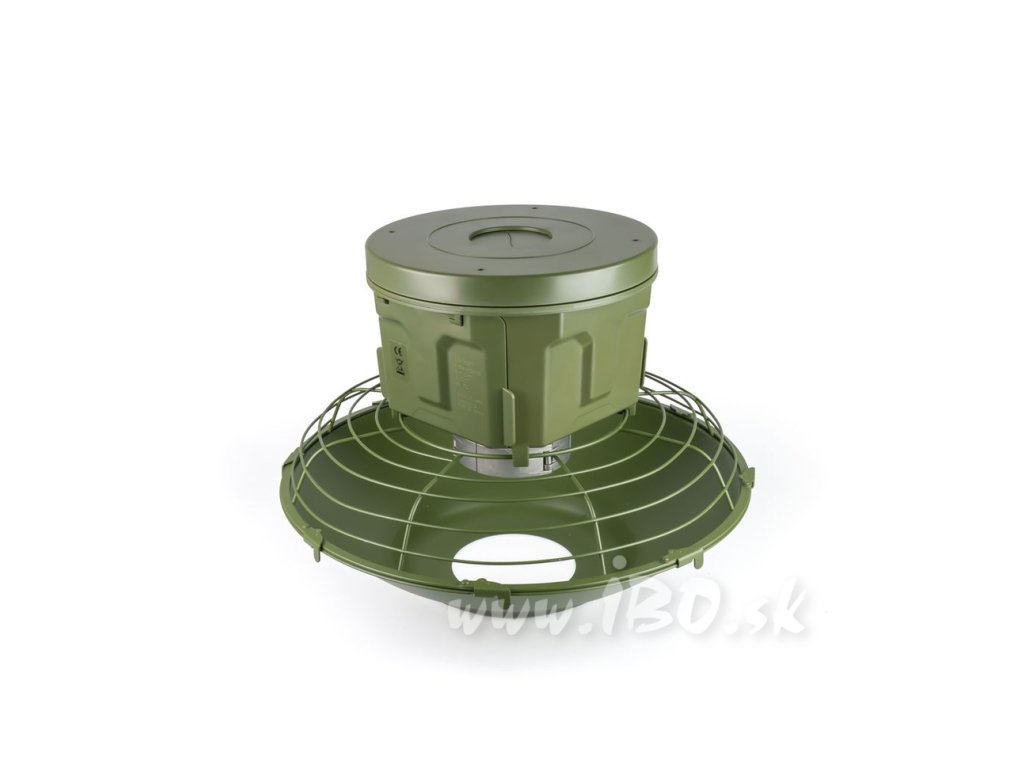 Automatický podavač krmiva Eurohunt Evolution se vždy postará o pravidelné přikrmování každý den. Ať už je umístěn v lese nebo se používá v chovu prasat a skotu. Podavač lze upevnit na jakýkoli sud, kontejner nebo jinou nádobu pomocí bej. uzávěru. Na zařízení se nachází uzavírací klapka v držáku, která se stará o plynulé rozhazování krmiva a zabránění vypadnutí nechtěného krmiva.
