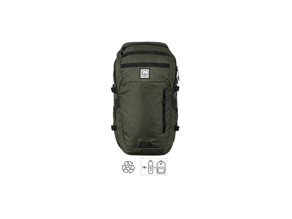 Jednokomorový batoh s pohodlným rozšířeným horním vstupem a polstrovanými zpevněnými zády a ramenními popruhy. Batoh má několik kapes včetně organizéru pro snadné uspořádání. V hlavním prostoru naleznete polstrovanou přihrádku na notebook. Batoh je vyroben z recyklovaného polyesteru (k výrobě jednoho kusu bylo zrecyklováno 14ks PET lahví o objemu 0,5l). Při výrobě tohoto produktu došlo tedy k významné úspoře energie a redukci uhlíkové stopy.