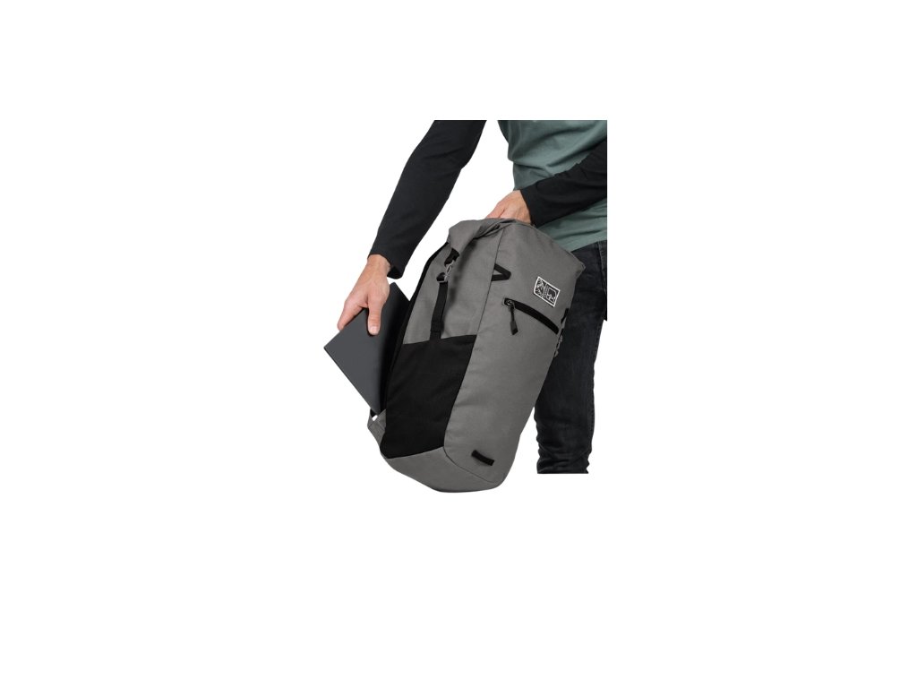 V hlavním prostoru naleznete polstrovanou přihrádku na notebook, kterou lze obsluhovat i přes boční vstup zvenčí batohu. Batoh je vyroben z recyklovaného polyesteru (k výrobě jednoho kusu bylo zrecyklováno 13 ks PET lahví o objemu 0,5 l). Při výrobě tohoto produktu došlo tedy k významné úspoře energie a redukci uhlíkové stopy.