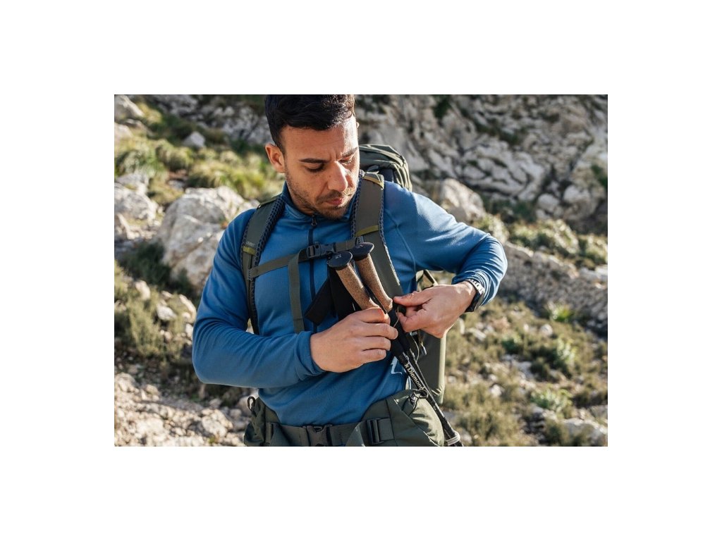 - Dvojité rychloupínací horní boční kompresní popruhy s úchytem na sekeru/trekingovou hůl