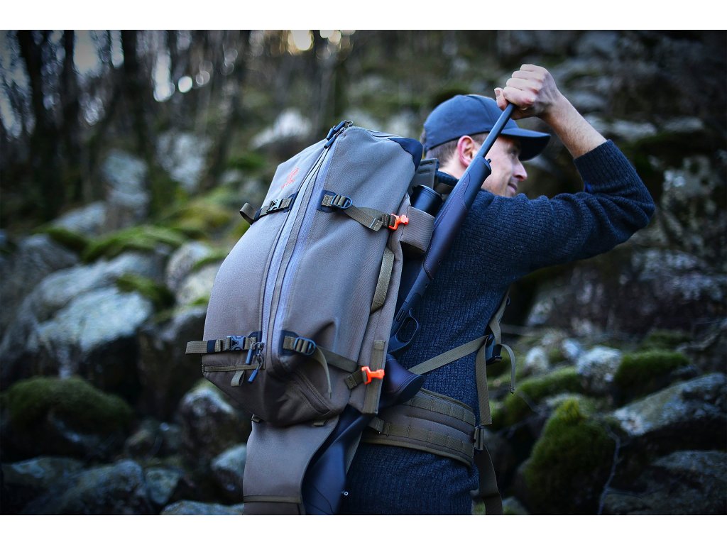 - Myslivecký batoh s funkcí rychlého odepnutí zařízení (Quick Rifle Release, „QRR“)
