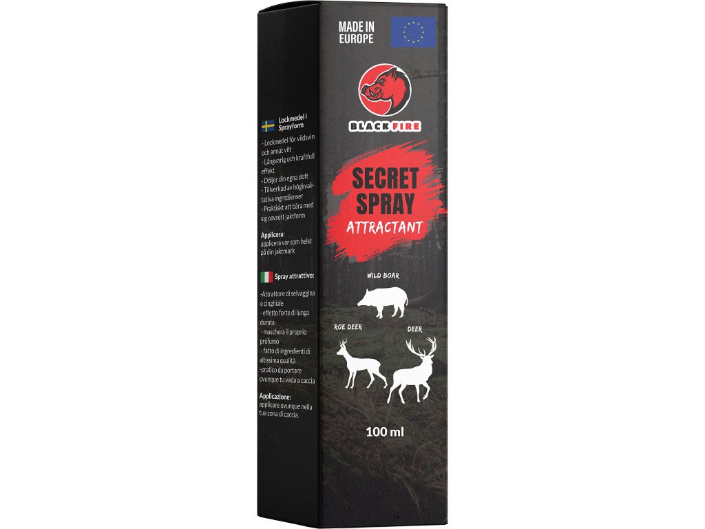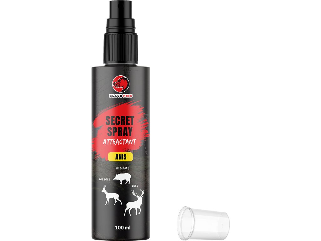 Sprej Black Fire Secret Anis je praktický vnadící prostředek pro zvýšení úspěšnosti lovu divoké, jelení a srnčí zvěře. Díky obsaženému aroma boosteru zesiluje stávající vůni v revíru, přičemž se aplikuje na stromy nebo vnadící materiál. Na rozšíření anýzové vůně v revíru lze nastříkat i podrážky bot. Až 200 aplikací na láhev. Obsah 100 ml.