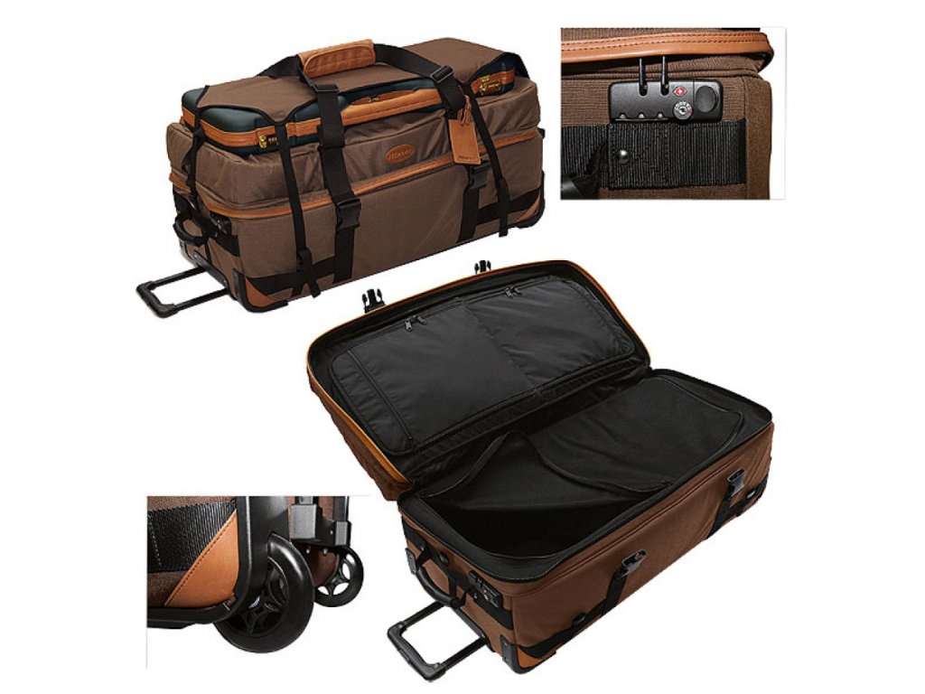 Blaser kufr Trolley Praktická myslivecká cestovní taška vyrobená z vysoce kvalitní, extrémně odolné Cordury s aplikacemi z pravé kůže. Všestranný systém zavazadel a přihrádek s četnými kapsami na zip a kapsou na dokumenty na vnější straně nabízí optimální úložný prostor pro kompaktní přepravu všech mysliveckých zavazadel. Pohodlná manipulace díky výsuvné teleskopické rukojeti, velkým kolečkům s kuličkovým ložiskem, výsuvné základně a délkově nastavitelným širokým popruhem. Rukojeť vyrobena z protiskluzové gumy na straně hlavy se sponami odolnými proti nárazu. Bezpečné upevnění pouzdra na zařízení pomocí pěti nastavitelných popruhů. Uzamykatelné kombinovaným zámkem TSA.