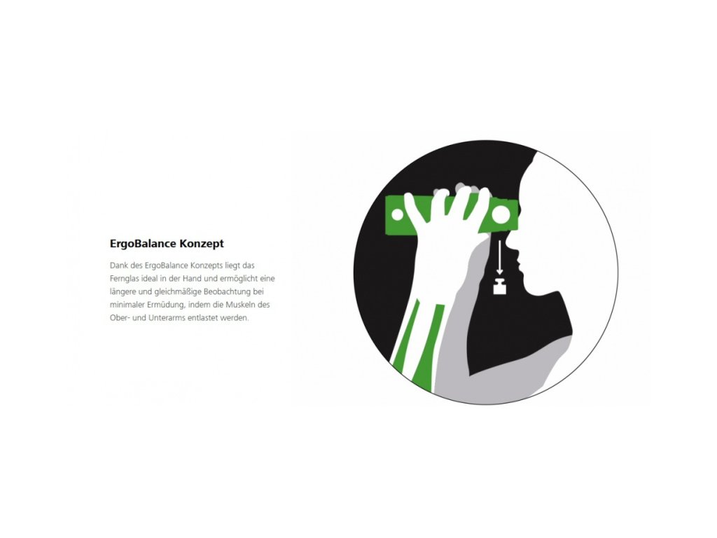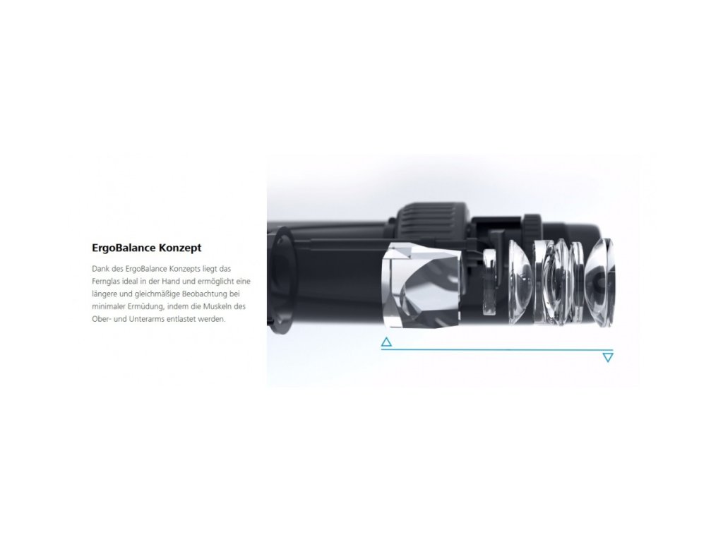 Díky konceptu ErgoBalance dalekohled perfektně padne do ruky a umožňuje delší a konzistentní pozorování s minimální únavou odlehčením svalů horní části a předloktí.