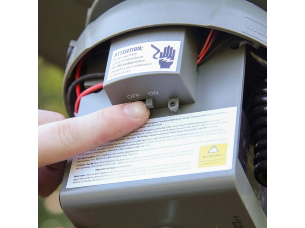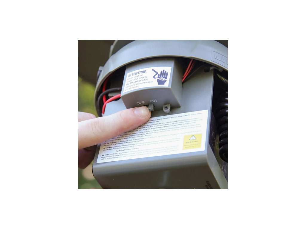 Vybaveno krmnou sadou NXT Hunter s vestavěným elektrickým varmintovým odpuzovačem a programovatelným digitálním časovačem. Varmintový odpuzovač má bezpečnostní spínač s nízkou spotřebou energie, který pomáhá zabránit vniknutí zvířat bez nadměrného vybíjení baterie. 360° rozptyl s větrotěsným kovovým rozmetacím talířem zabraňujícím tvorbě shluků. Napájení 6V 5Ah baterií (prodává se samostatně). Můžete nastavit až 10 různých krmných časů denně, každý s intervaly od 0 do 60 vteřin. Moultrie Deer Feeder 325 Elite II vám umožní naplnit nádrž, nastavit časovač a nechat zařízení pracovat měsíce bez další údržby.