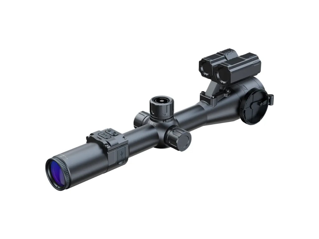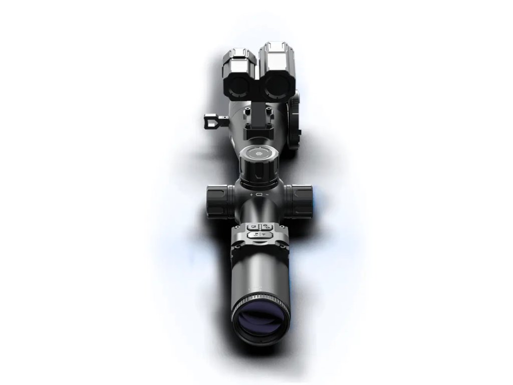 Laserový dálkoměr a bal. kalkulátor: Integrovaný bal. kalkulátor ve spojení s laserovým dálkoměrem na 1000 m automaticky vypočítá trajektorii akce a zobrazí bod dopadu na displeji přístroje. Tato pokročilá technologie výrazně pomůže při přesnosti zásahu na delší vzdálenosti.