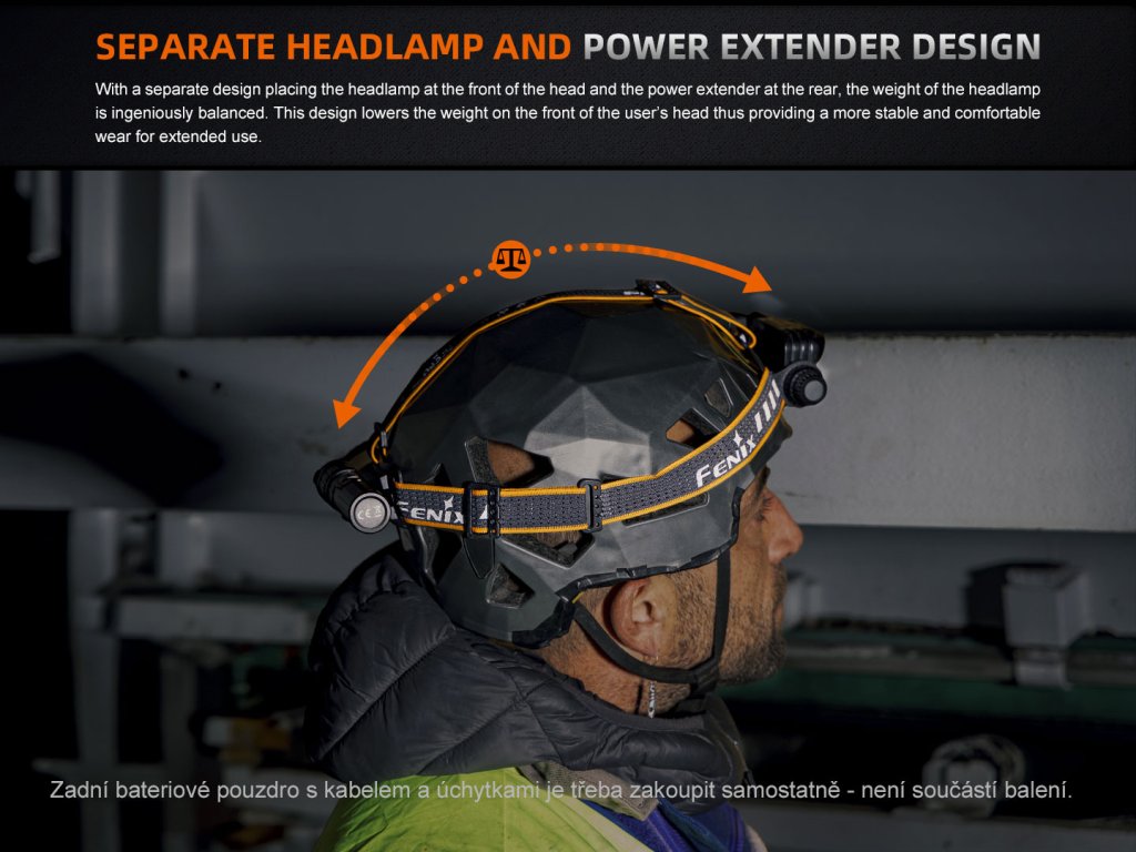 - K čelovce lze dokoupit náhradní hlavní popruh, náhradní horní popruh, pouzdro Fenix APB-30, prodlužovací USB-C kabel 1,5m, externí baterie pro HM75R, sadu černých popruhů AFH-02 bez reflexních prvků, USB adaptéry do elektrické sítě nebo auta.