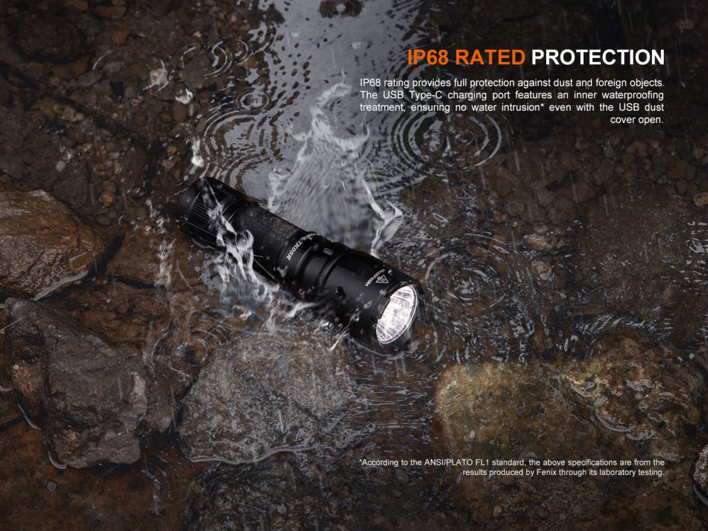 Fenix TK05R je kapesní nabíjecí taktická svítilna se snadným ovládáním, s možností rychlé aktivace stroboskopu a výkonem až 1000 lumenů . Je osazeno špičkovou LED Osram CSLPM1.TG , díky které má skvěle zaostřený kužel a dosvítí až do vzdálenosti 450 metrů . Svítilna používá duální taktický spínač , který umožňuje rychlejší a spolehlivější ovládání v krizových situacích. Hlava svítidla je vybavena úderným ráfkem, takže lze svítidlo použít k proražení skla či na sebeobranu. Robustní provedení umožňuje použití svítidla na dlouhých zařízeních, je tak vhodné pro profesionály, ozb. složky i myslivost. Svítilna je napájena z jednoho kompaktního Li-ion 18350 1100 mAh akumulátoru (je součástí balení), který se nabíjí přímo ve svítidle přes moderní USB-C konektor a dodá energii až na 14,5 hodiny svícení. Solidní a voděodolný design předurčuje toto taktické svítidlo primárně pro drsné vnější podmínky a pro použití v bezpečnostních složkách, při vyhledávání, záchranných akcích a na myslivost.