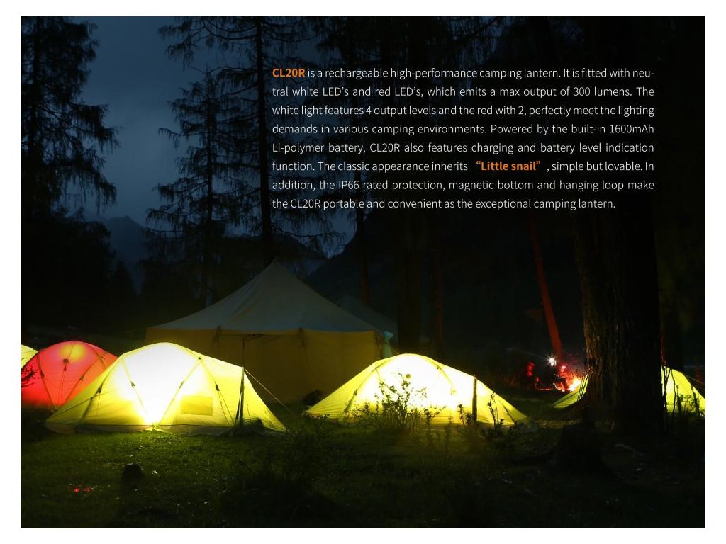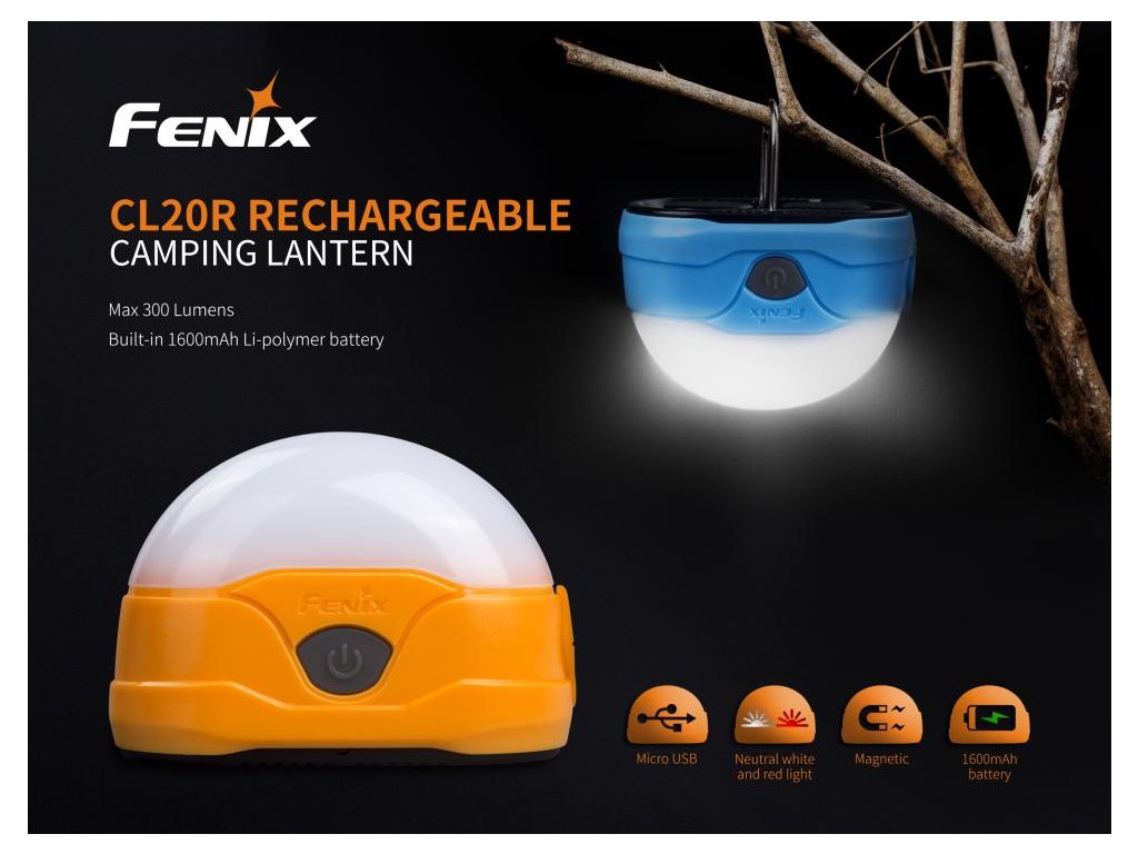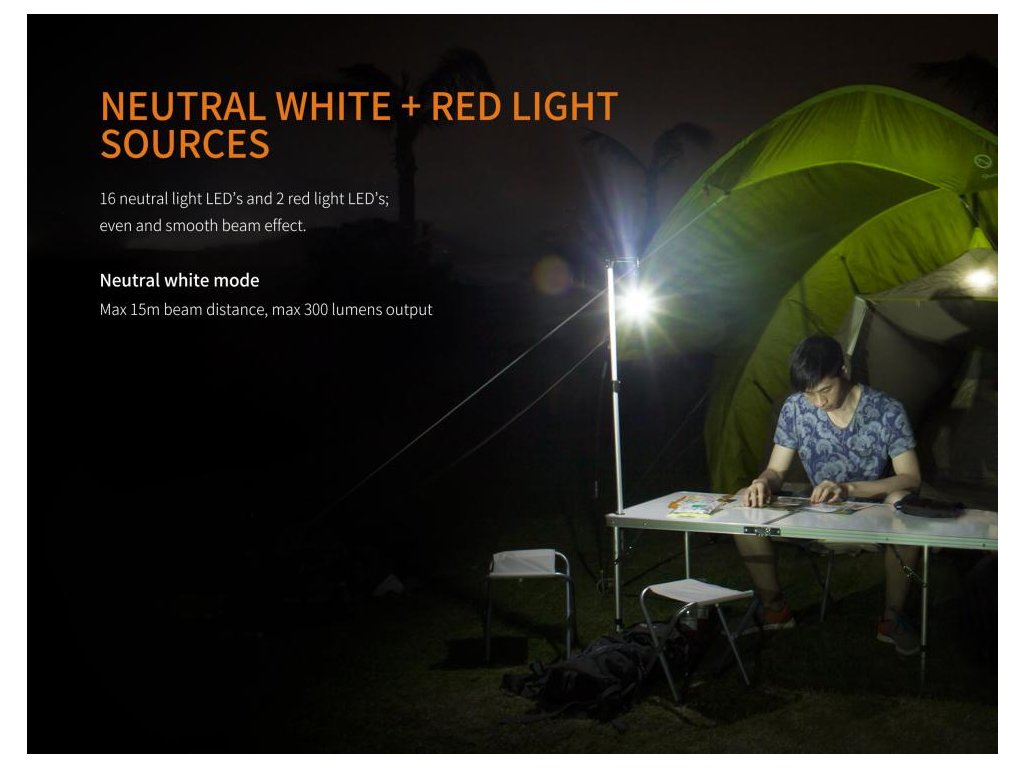Fenix CL20R je praktická nabíjecí přenosná vojtěška , kterou můžete použít k osvětlení místnosti, stanu či pracovního stolu. Šestnáct vysoce jasných diod ukrytých pod půlkulovitým difuzérem poskytuje světelný tok až 300 lumenů (ANSI) s neutrálním odstínem bílého světla. Výhodou tohoto odstínu světla je přirozenější a kontrastnější podání barev v přírodě.