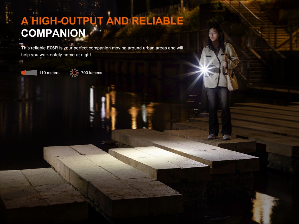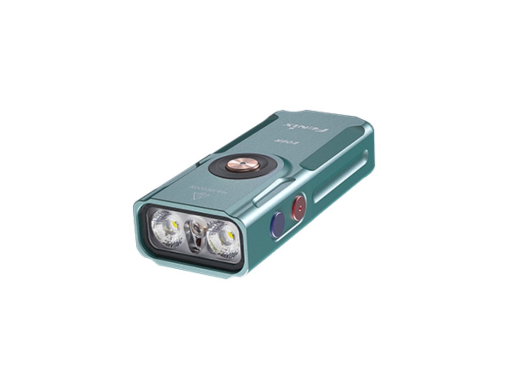 Fenix E06R je větší variantou úspěšné miniaturní dobíjecí baterky Fenix E03R V2.0. Oproti ní má nejen vyšší výkon, ale také ultrafialové světlo a laserové ukazovátko. I přes kompaktní rozměry a váhu pouhých 54 gramů nabízí vysoký světelný tok až 700 lumenů (ANSI). Světelný kužel rovnoměrně osvětluje široký prostor až do vzdálenosti 110 metrů . K napájení slouží integrovaný akumulátor o kapacitě 750 mAh, který se nabíjí přes moderní USB-C konektor na boku svítilny. K dispozici jsou celkem čtyři režimy bílého světla, UV světlo o vlnové délce 365 nm o síle 580 mW, červený laser (ukazovátko ≤0,39 mW) a několik režimů tzn. Breathing light - světla kolem spínacího tlačítka o síle 0,5 až 1 lumen, která využijete pro nenápadnou signalizaci či identifikaci umístění svítidla. Svítilna je dodávána včetně pevného klipu, takže jej můžete uchytit na kapsu, popruh batohu či kšilt čepice a uvolnit tak při svícení ruky. Díky magnetu v patce svítidla jej můžete přichytit na cokoli železného. Praktický je také indikátor stavu nabití baterie v tlačítku. Tato kapesní baterka je skvělá pro EDC a díky malým rozměrům, plochému tvaru a váze ji můžete mít stále u sebe.