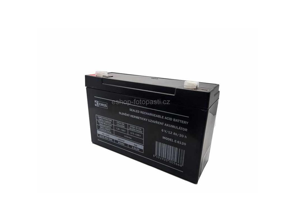 Baterie značky EMOS je vhodná pro všechny typy fotopastí. Napětí 6V a kapacita 12Ah zaručuje dlouhodobý provoz na odlehlých místech. Olověný akumulátor.