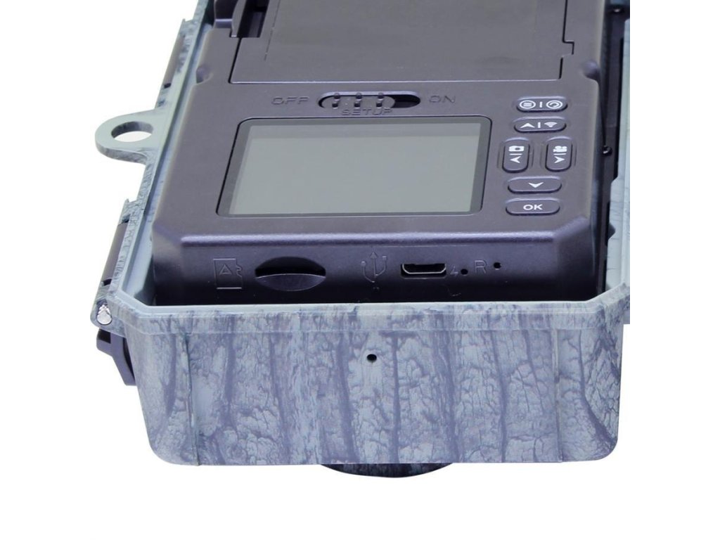 Fotopast OXE Viper je kompletně v českém jazyce! Velký a přehledný LCD displej s úhlopříčkou 2" je ukrytý uvnitř fotopasti. Všechny prvky ovládacího menu jsou na displeji jasně zřetelné, čitelné a především v nám srozumitelném a blízkém, českém jazyce. Ovládací tlačítka jsou umístěna na pravé straně od displeje. Nastavení fotopasti a její ovládání je opravdu nesmírně jednoduché.