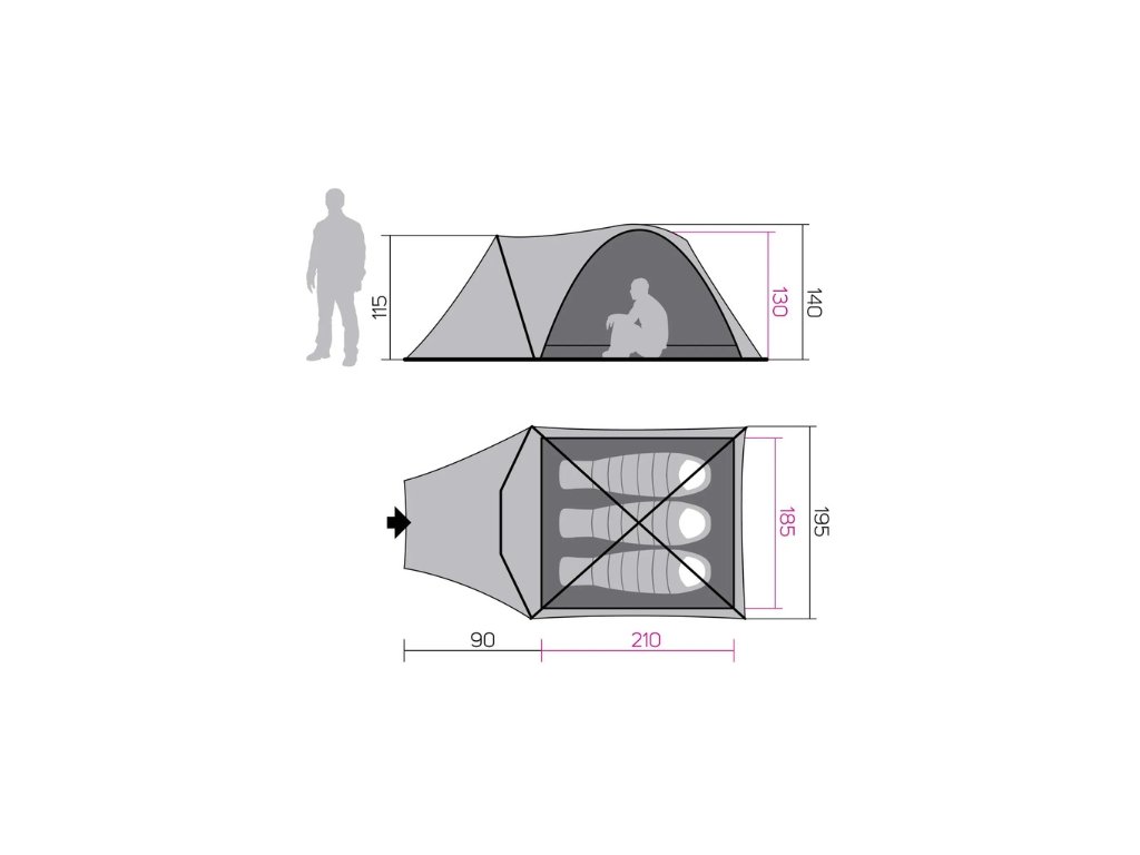| Rozměr vnitřního stanu | 210 × 185 × 130 cm |