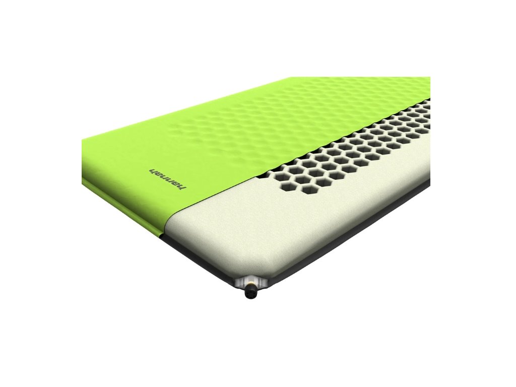 Samonafukovací karimatka s pěnovou konstrukcí s dutinami ve tvaru včelího plástve. Vrchní jemný broušený materiál je nejen příjemný, ale navíc zamezuje klouzání spacáku po karimatce. Karimatka při plném nafouknutí poskytuje 5cm vysoký komfort. Vhodná pro použití na jarní a letní outdoorové aktivity. Dodáváno včetně opravné sady a vaku na sbalení.