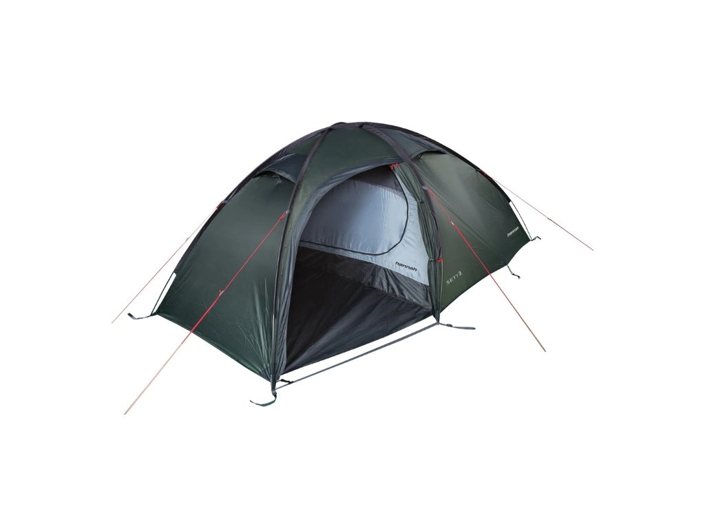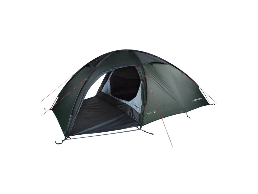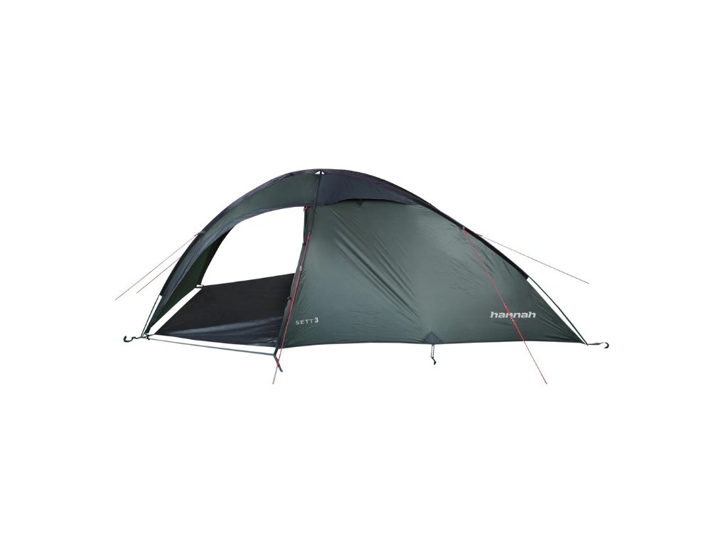 Stabilní a prostorově komfortní stan Hannah SETT 3 s vnější konstrukcí.