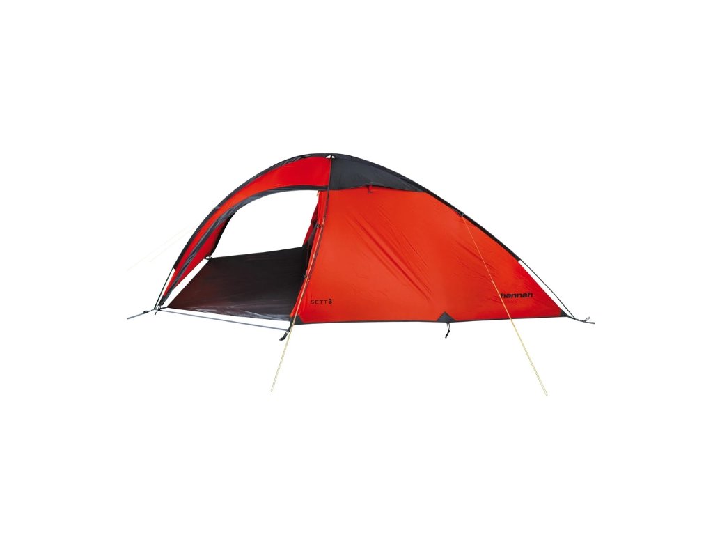 Stabilní a prostorově komfortní stan Hannah SETT 3 s vnější konstrukcí.