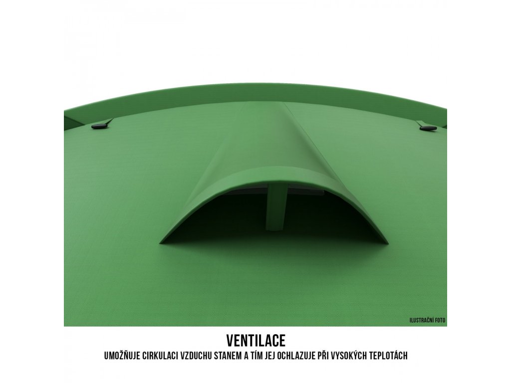 Jemný, průvzdušný a přece pevný materiál, z něhož je vnitřní síťová moskytiera vyrobena, umožňuje, aby vzduch uvnitř stanu lépe cirkuloval. Tím je zajištěno kvalitní odvětrávání.