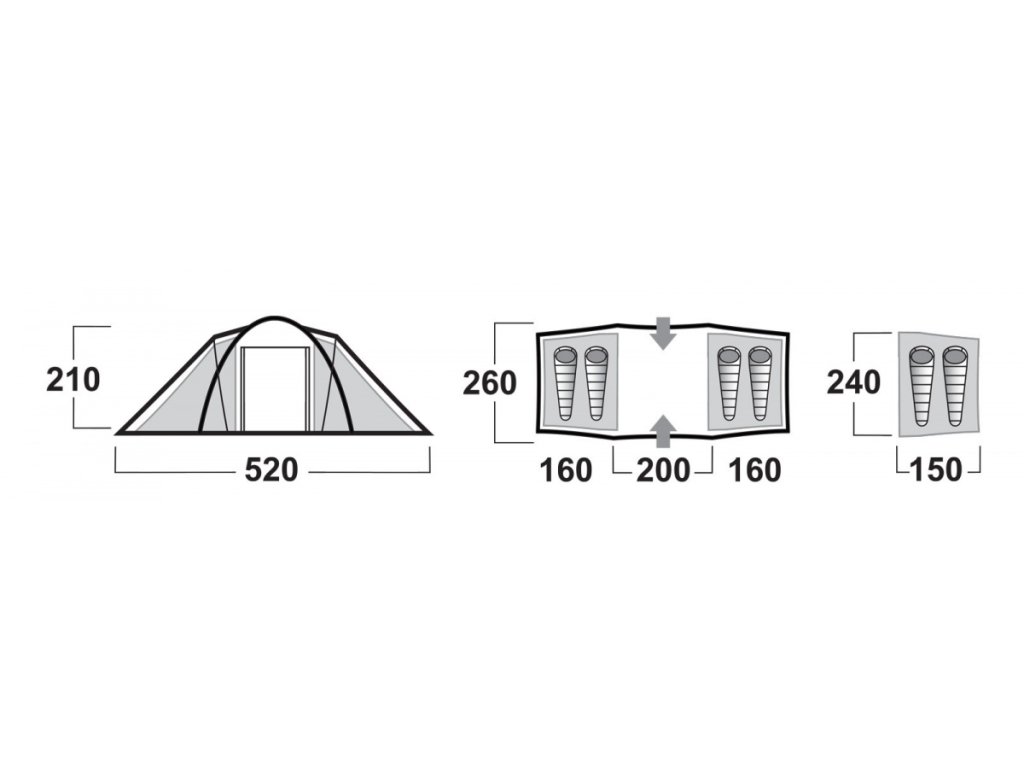 - Vysokou odolnost, prodyšnost a pohodlí zaručují kvalitní materiály, ze kterých je stan vyroben.