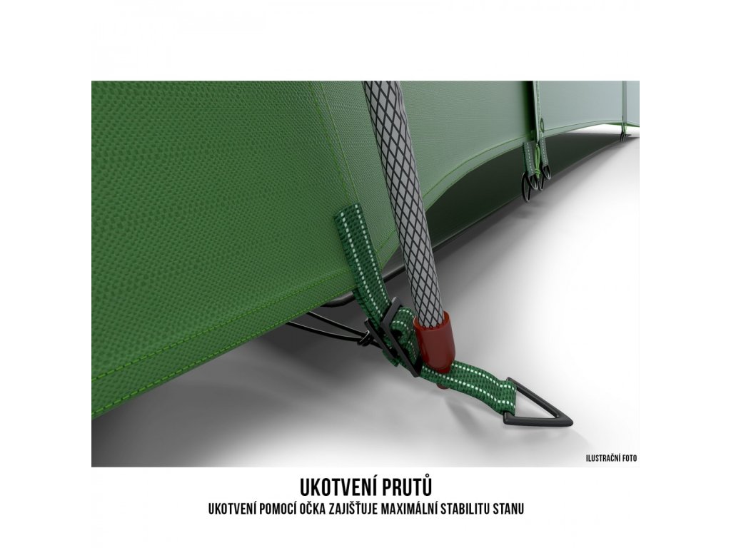 - Provedení Dural grantuje vysokou životnost konstrukce a umožňuje snadnou manipulaci během stavění i skládání stanu.