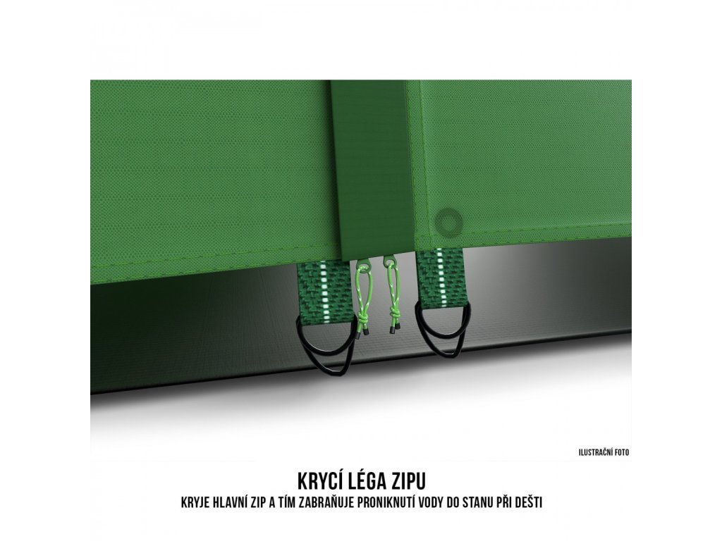 - Horní zalomení konstrukce zvyšuje vnitřní prostor stanu.
