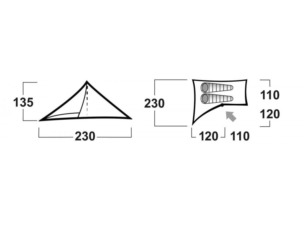 | Hmotnost | : min./celková 1,10 kg / 1,50 kg Konstrukce: dvouplášťový samonosný stan s vnitřní konstrukcí |