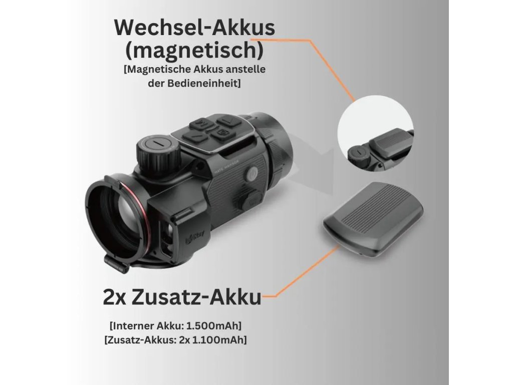 Kompaktní laserový dálkoměr v těle a bal. kalkulátor dělají z předsádky MATE MAH50R skvělého pomocníka k lovu na dlouhé vzdálenosti. Další výhodou jsou odnímatelná tlačítka, která si můžete pomocí pásky upnout na zařízení hlavně a namísto tlačítek vložit externí nabíjecí zdroj, který prodlouží životnost přístroje o dalších 5h.
