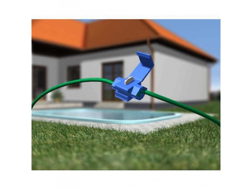 Po vložení oboch koncov vodičov do konektora zovrite kovový konektor kliešťami, zacvaknite plastový kryt a bezpečne ho zaizolujte napr. vodotesnou páskou.