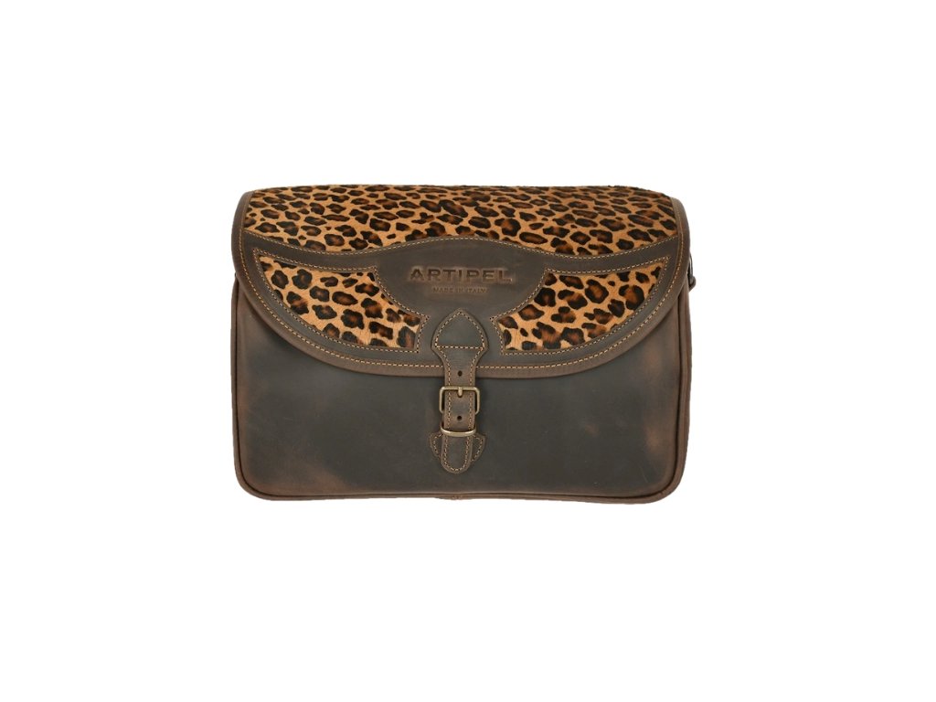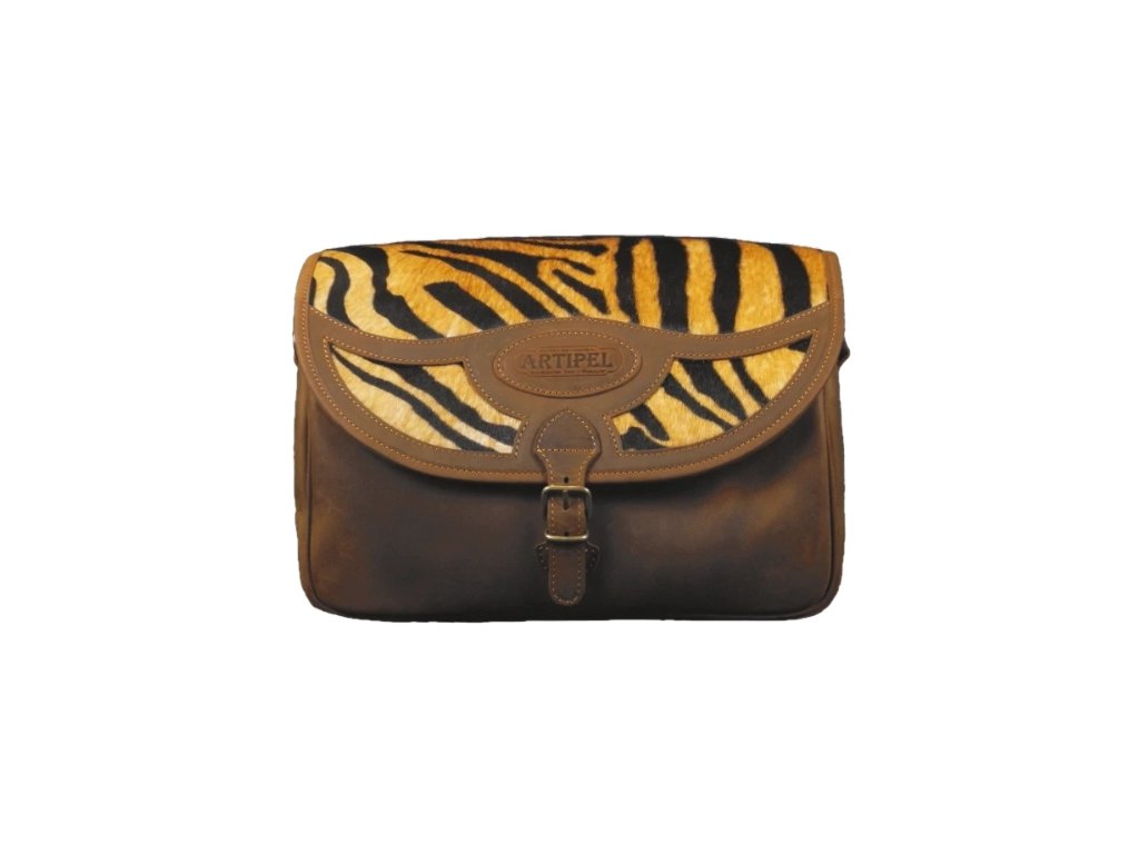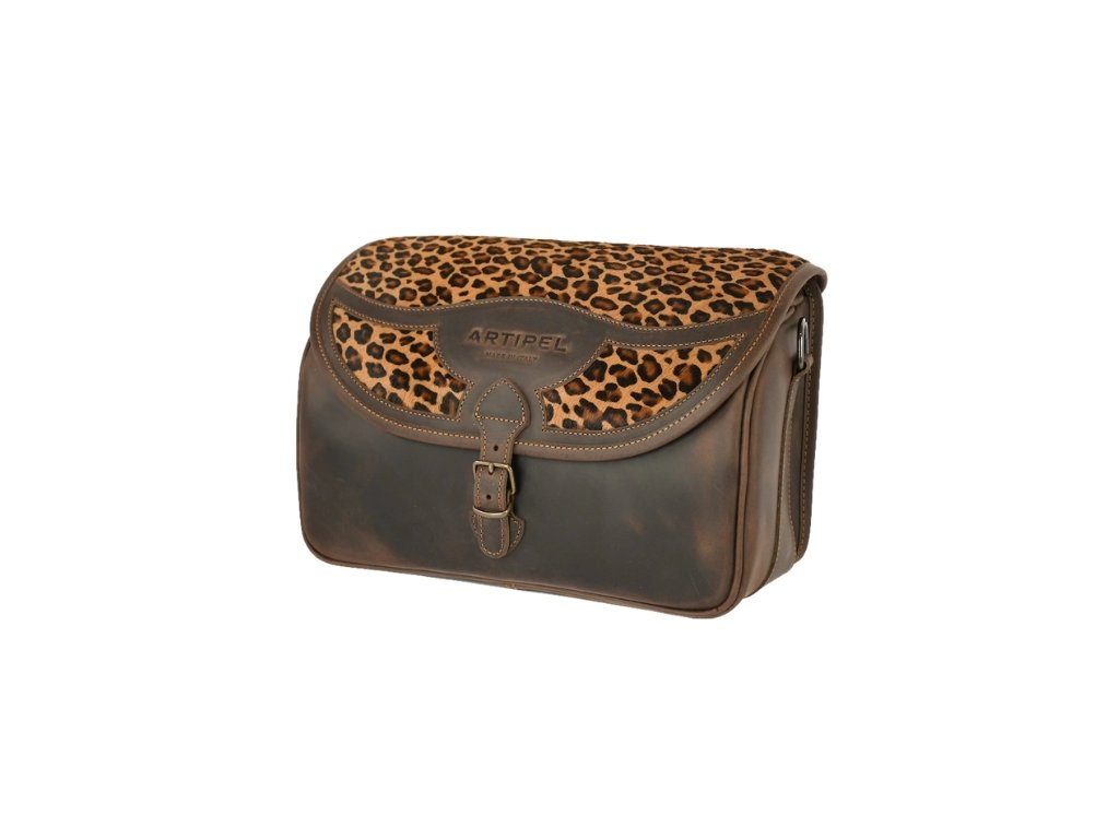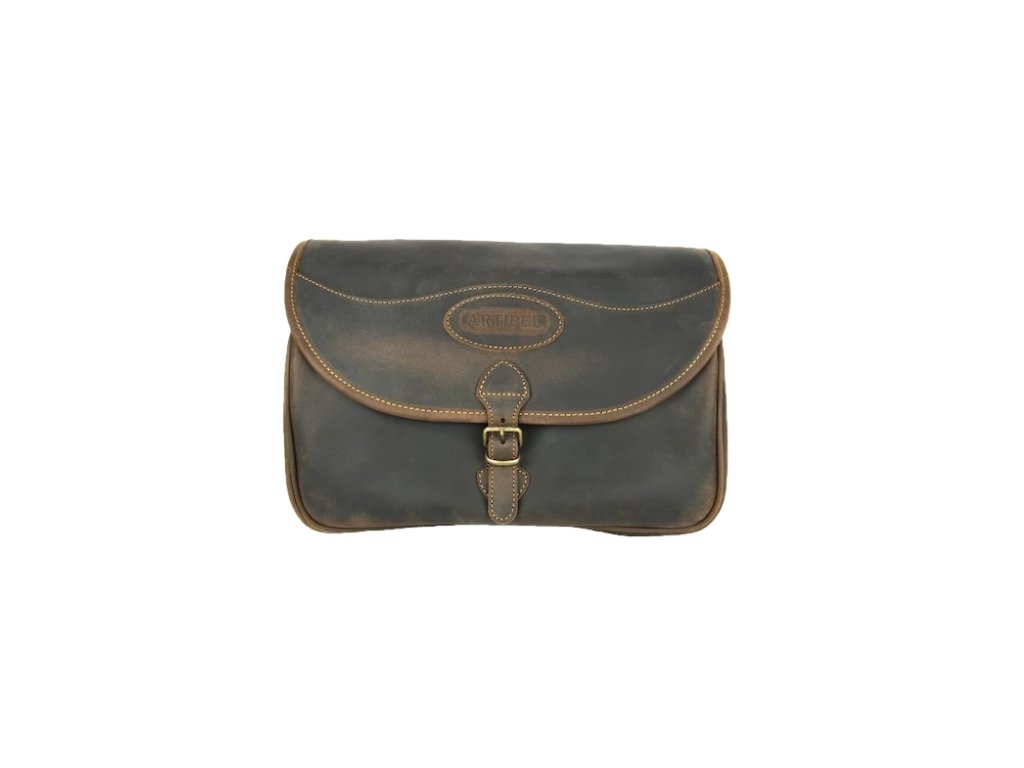 Myslivecká taška s voděodolnou úpravou, pevně ušitá, janovský typ. Má kapacitu 100 nebalených komponentů kálib. 12. Obsahuje kožený ramenní popruh.