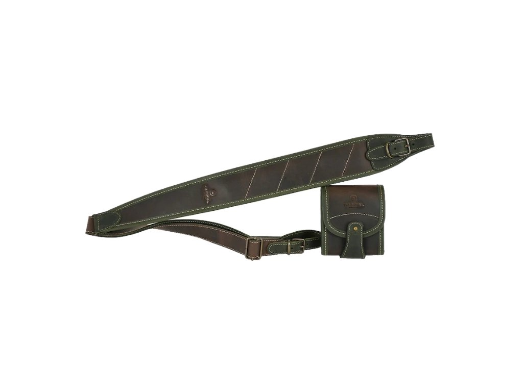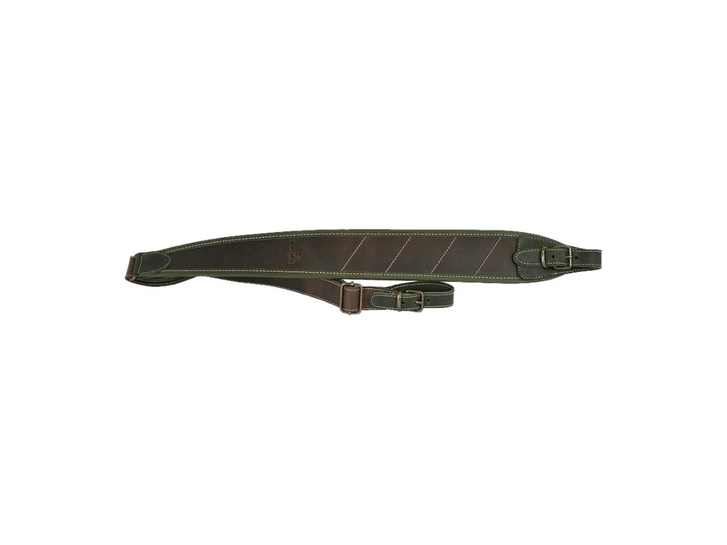 Řemen s voděodolnou úpravou "bicolore", kůže s efektem teletiny. Neklouzavá úprava s neoprenem, nastavitelnost délky 93–115 cm . Ručně přišitá poutka s přezkou.