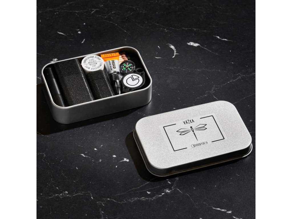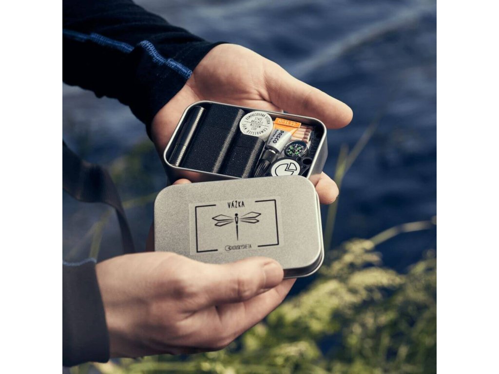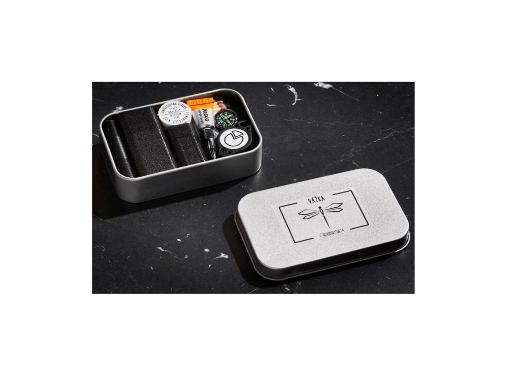 Krabička poslední záchrany Vážka od Kousky světa obsahuje více než 25 druhů kvalitního vybavení, které využijete v případě potřeby kamkoli se vydáte. Ať už budete na outdoorové výpravě v přírodě nebo na cestě z práce ve městě, kompaktní a lehký set s nezbytným vybavením se hodí v běžných i v krizových situacích. Tato EDC sada je ideální společník pro turisty, dobrodruhy, skauty nebo každého, kdo chce být připraven.