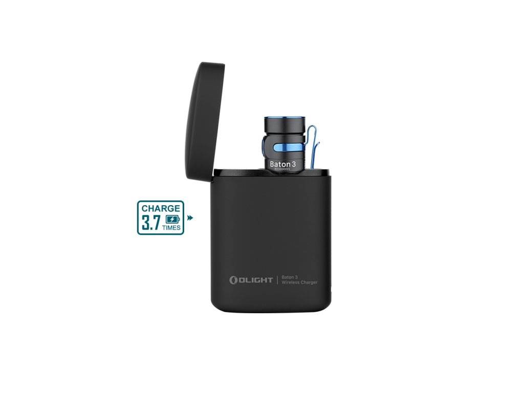 Nad portem nabíjení je zabudován LED stav, který během nabíjení svítí červeně. Když je svítidlo plně nabito, barva se změní na zelenou. Když odklopíte horní část pouzdra, v jeho nabíjecím slotu se nachází miniaturní baterka EDC. V nabíjecím pouzdře je zabudována 3500 mAh baterie, která dokáže nabít baterii 3,7krát. S tímto pouzdrem se výkon baterky Baton 3 zvýšil z 20 dní na 94 dní.