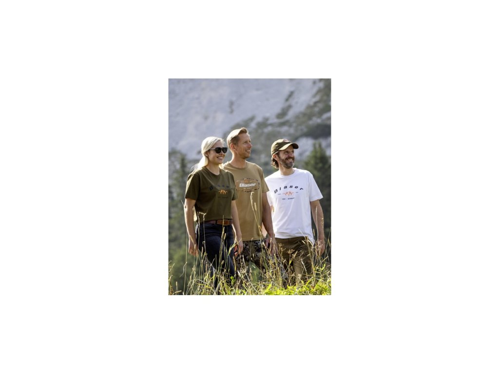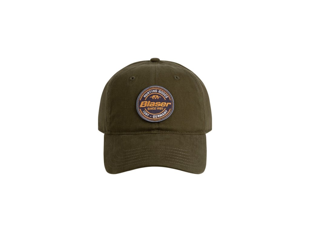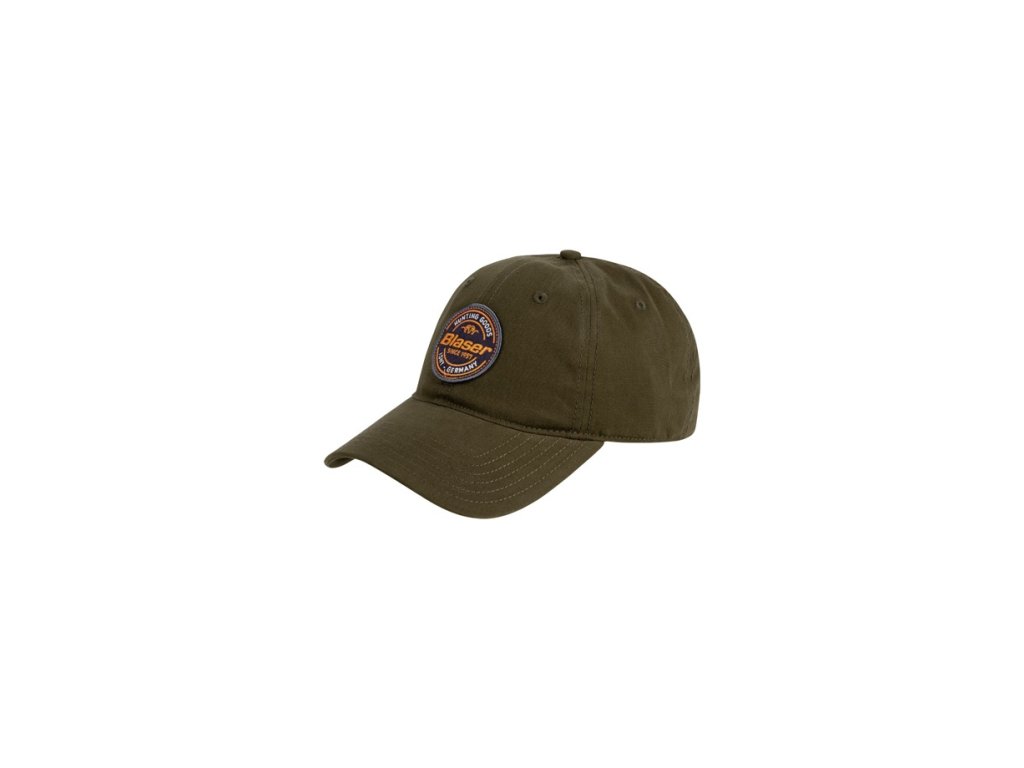 Čepice z obyčejné bavlny má klasický retro styl. Kulatý odznak na přední straně kšiltovky kombinuje logo Blaser a argali s nápisem „Hunting Goods“. Jednovelikostní kšiltovka se dá vzadu regulovat zapínáním na snapback. Přední část čepice není vyztužená.