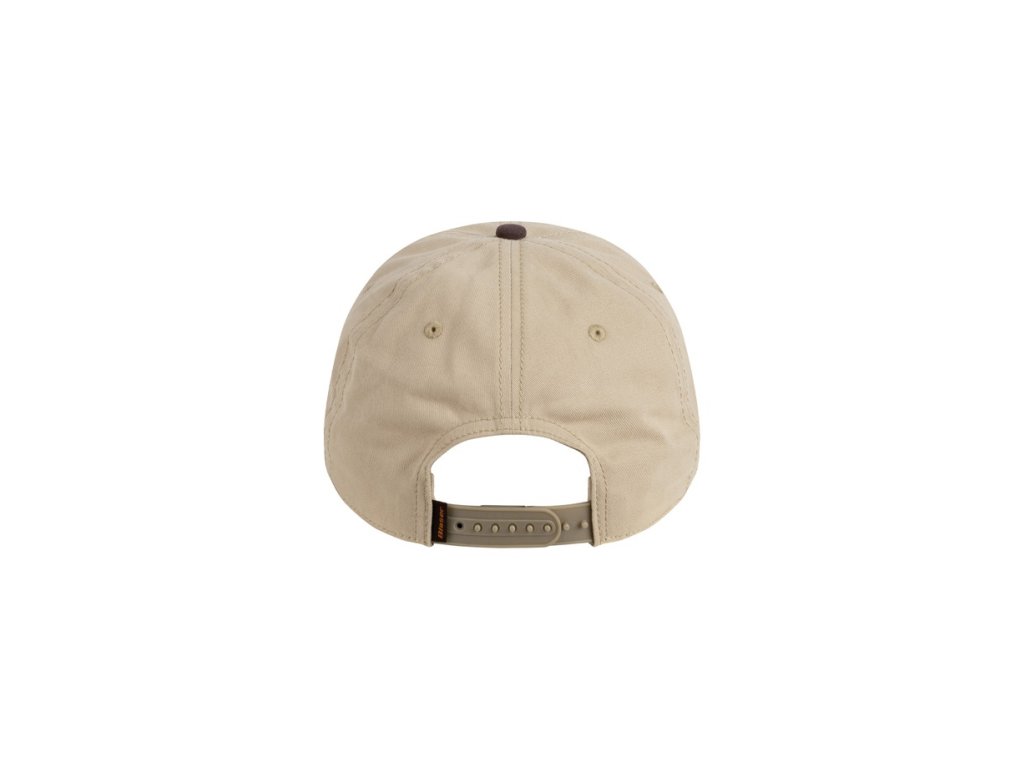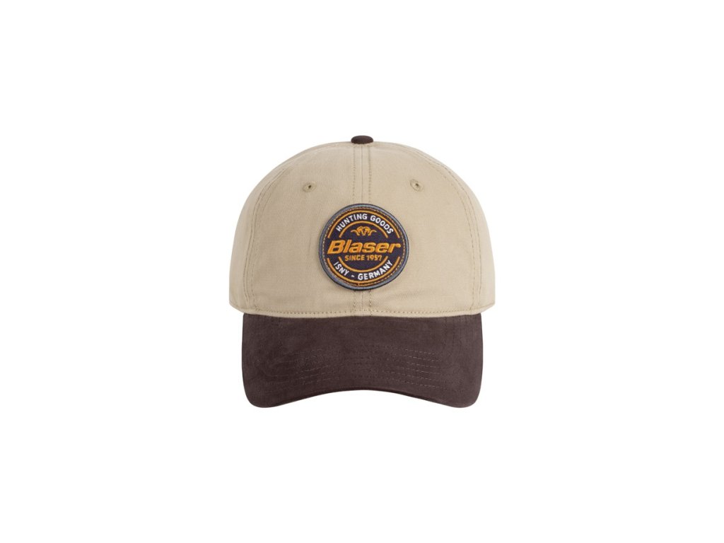 Čepice z obyčejné bavlny má klasický retro styl. Kulatý odznak na přední straně kšiltovky kombinuje logo Blaser a argali s nápisem „Hunting Goods“. Jednovelikostní kšiltovka se dá vzadu regulovat zapínáním na snapback. Přední část čepice není vyztužená.