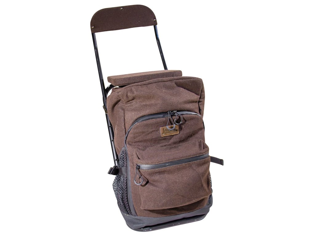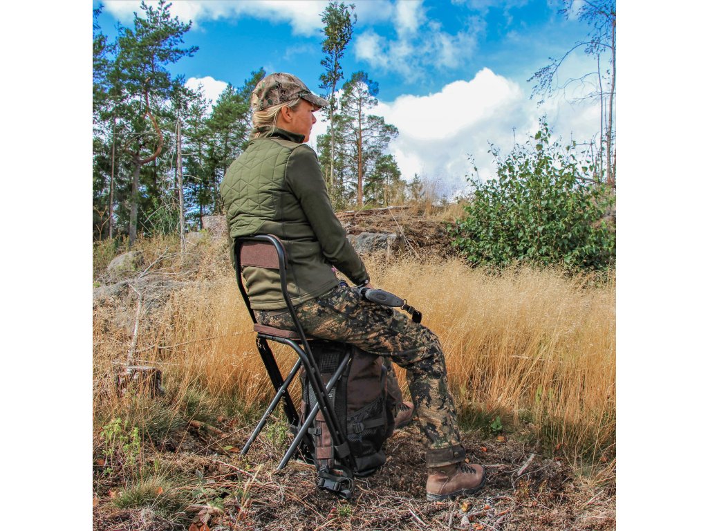 Batoh s židlí nabízí velmi pohodlné sezení v revíru. Pohodlné čalounění sedací plochy a zádové opěrky zajišťují vysokou užitnou hodnotu. Potřebnou stabilitu zajišťuje rám z hliníku. Samotný batoh s velkým hlavním úložným prostorem, přední kapsou a dvěma bočními kapsami je odnímatelný, může se tedy používat i jako běžný myslivecký batoh. Víko se zapínáním na zip je zkonstruováno s ohledem na snadné a nehlučné použití.