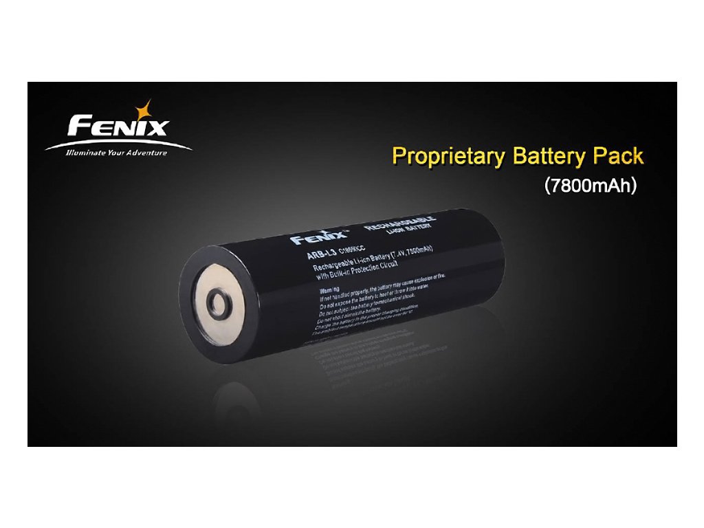 Náhradní li-ion akumulátor ARB-L3 s napětím 7,4 V a kapacitou 7800mAh pro ultra výkonnou nabíjecí svítilnu Fenix RC40.