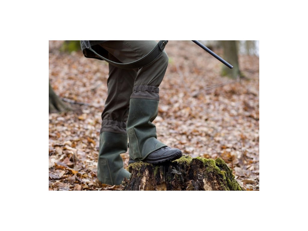 Návleky s efektem teletiny nebo v zelené kůži a ve voděodolné úpravě . Uzavíratelné na zip s kovovými cvočky na boty. Kožené detaily, vyměnitelné stahovací ocelové lanko, svrchní materiál Explorer stažen gumou.