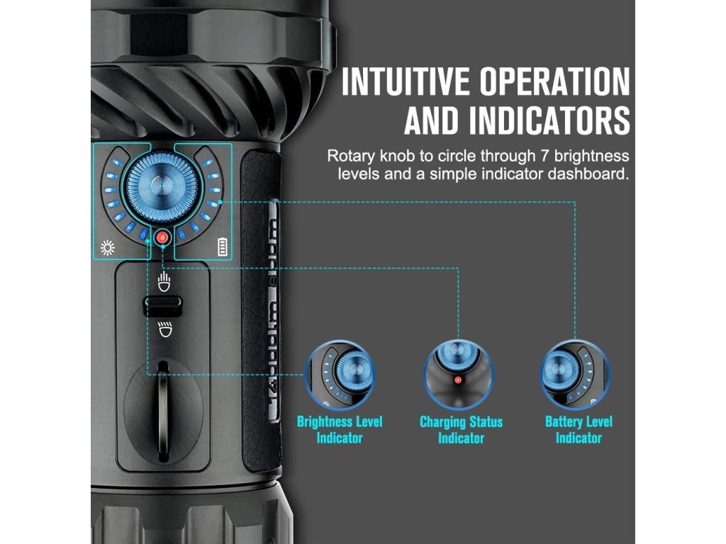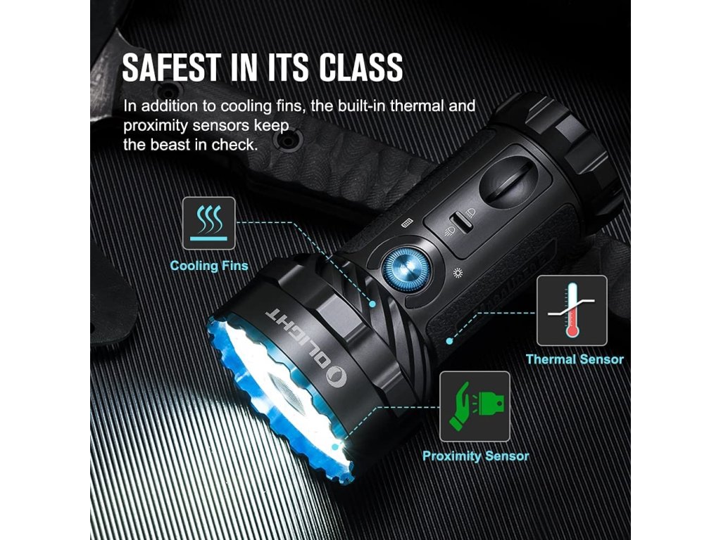 - Zvýšená bezpečnost. Snímač přiblížení, který automaticky uvolní výstup, když se hlavice baterky dostane k blízkému objektu. Aktivní systém tepelného managementu, který snižuje výkon, když je teplota příliš vysoká, aby se zabránilo jakémukoli poškození nebo přehřátí.