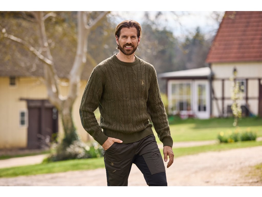 Pletený pulovr s kulatým výstřihem Deerhunter Randall je vyroben z pohodlné směsi polyakrylu, bavlny a vlny. Díky designu copánkového úpletu nabízí přitažlivý vzhled a vysoký komfort při nošení. Lemování loktů z imitace semiše dodává pulovru ještě elegantnější vzhled.