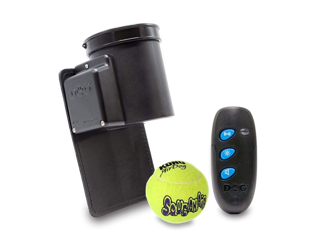 Podavač se ovládá pomocí malého vysílače do vzdálenosti 10m. Tento způsob ovládání, při kterém se míček uvolní automaticky po stisku tlačítka, umožňuje eliminovat všechny nechtěné zbytečné pohyby psovoda při odměňování psa.