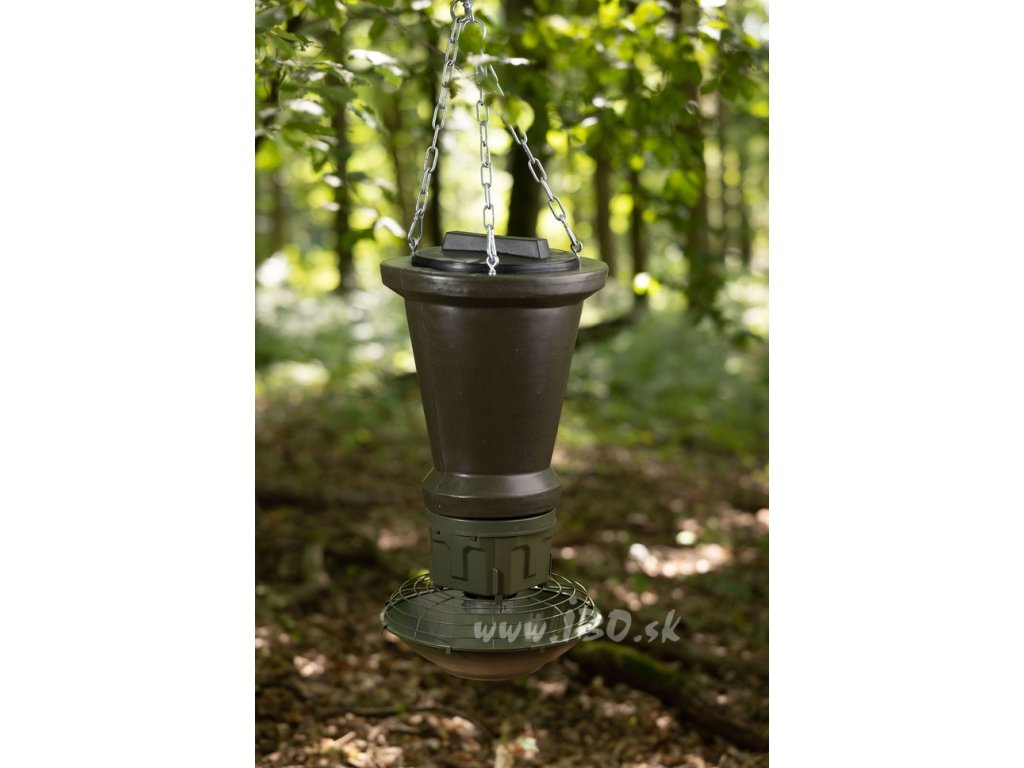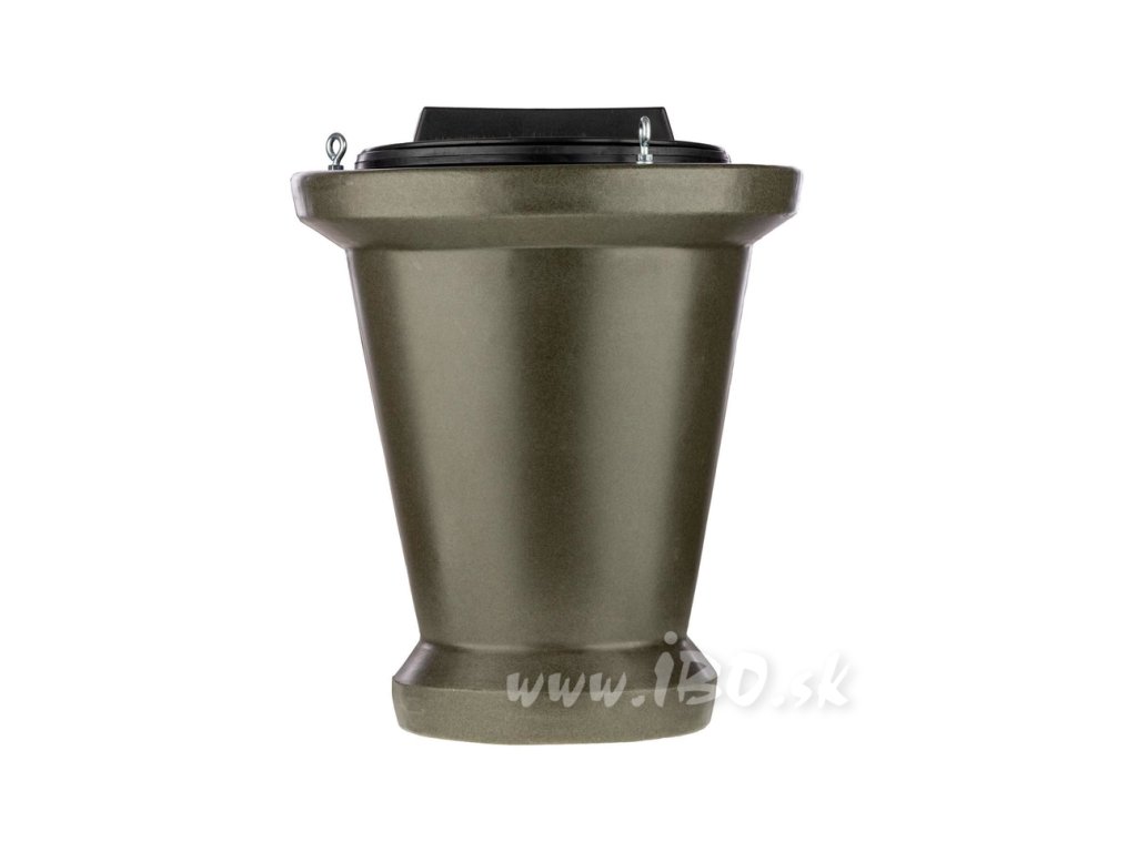 Tento krmný buben představuje ideální doplněk pro přikrmování pro každého lovce. Je vyroben z kvalitních materiálů, které jsou 100% odolné vůči mrazu, nárazům a prasknutí. Tvar kužele efektivně napomáhá k přirozenému podávání krmiva do podavače. Ve spodní části se nachází otvor a upevňovací body k podavači. Na vrchní části naleznete prostředky pro upevnění lana nebo řetězu. Od jiných krmných bubnů se odlišuje uzavíráním, které je mnohem rychlejší a jednodušší. Objem bubnu je 18 kg , díky čemuž se do něj vejde dostatek krmiva na delší dobu.