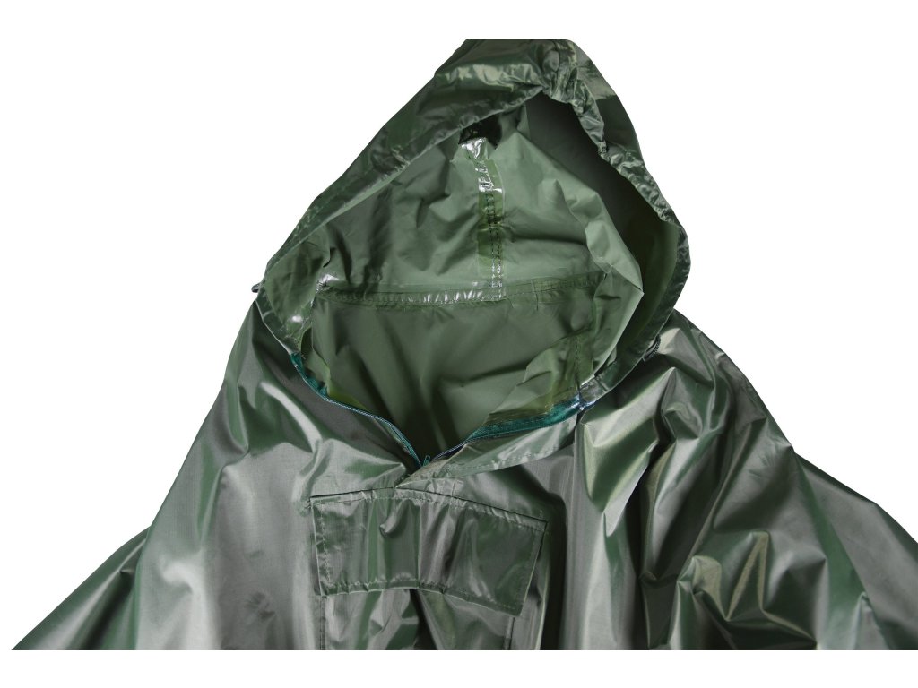 Pončo je odolné vůči větru a nepromokavé. Má svařované švy a nastavitelnou kapuci. Krátký zip usnadňuje přetažení ponče přes hlavu. Vpředu je umístěna klokaní kapsa a pončo Percussion lze na bocích zafixovat pomocí patentových knoflíků. Na každém rohu se nachází očko. Délka 100 cm. Hmotnost přibl. 640g.