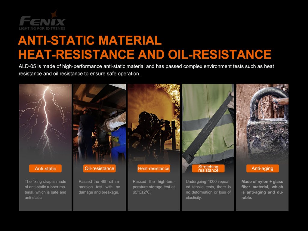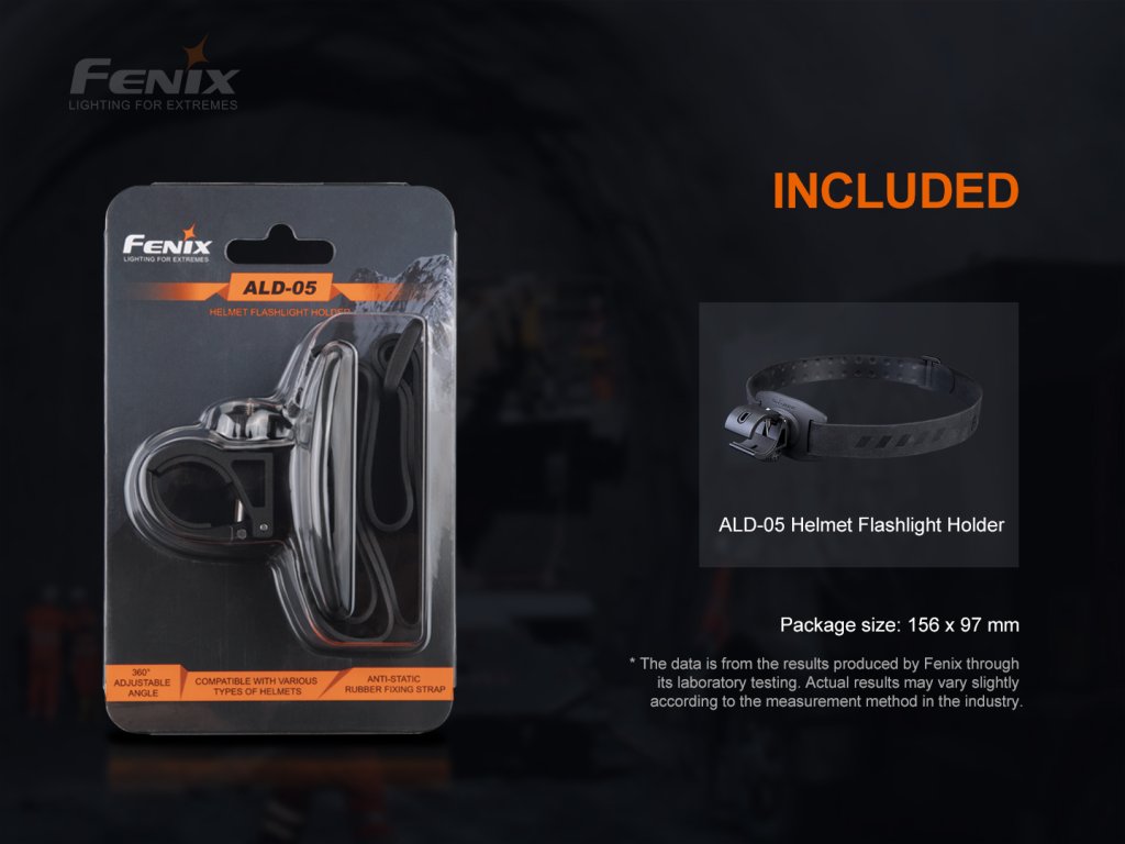 Použijte vaše svítidlo jako čelovku na přilbě! Díky speciálně navrženému popruhu Fenix ALD-05 můžete použít své výkonné svítidlo na pracovní, hasičské, záchranářské či jiné přilbě. Uvolní se vám ruce a usnadní se pohyb na stavbě, v přírodě při lezení či speleologii. Nastavitelný antistatický gumový fixační pásek lze pevně nosit na různých typech přileb s maximálním obvodem 66 cm . Držák svítidla lze otáčet o 360 stupňů , což oceníte při nastavení úhlu svícení. Součástí balení je popruh a otočný držák na svítilnu.