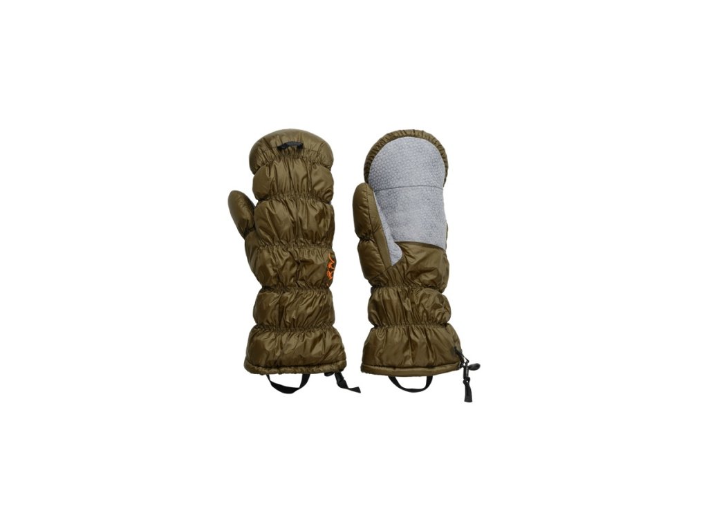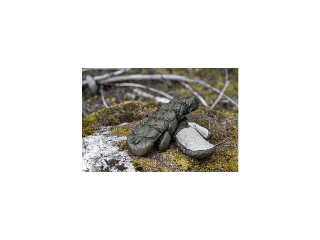 Péřové palčáky vyrobené z lehké 20D- tkaniny, předtvarovaný palec, česaná vnitřní podšívka, stahovací smyčky na vnitřní straně zápěstí a přes prsty pro snadné a rychlé natažení.