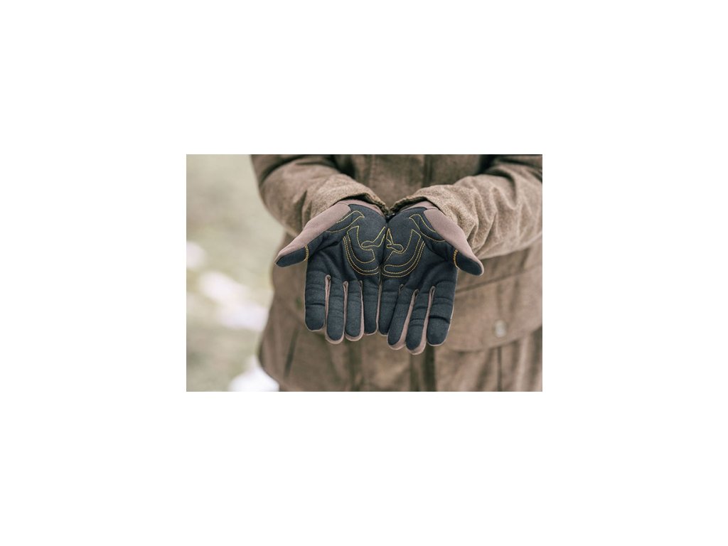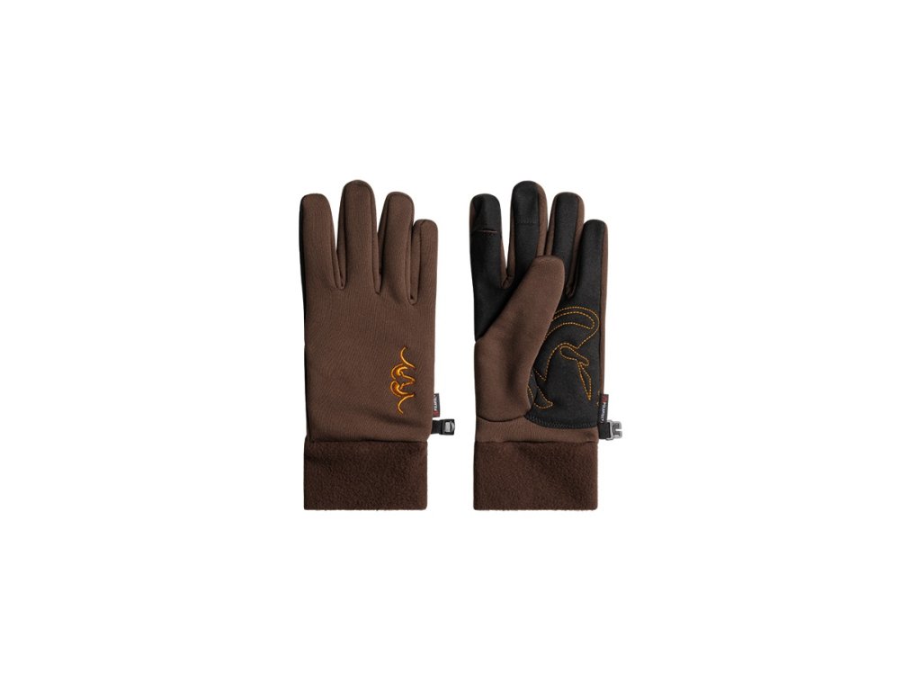 Tkanina na ukazováčku a palci, speciální konstrukce na prstu spouště pro vysokou citlivost na zařízení, grafika loga Argali všitá do dlaně rukavice, strečová manžeta pro projmutý střih.