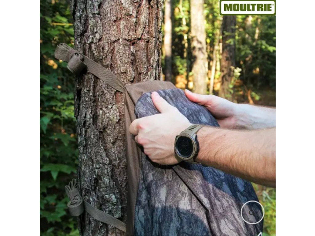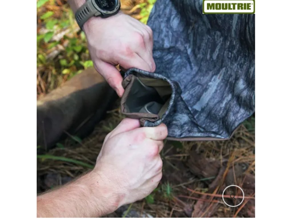 - Odolná a voděodolná tkanina s Moultrie Pine Bark™ camo vzorem