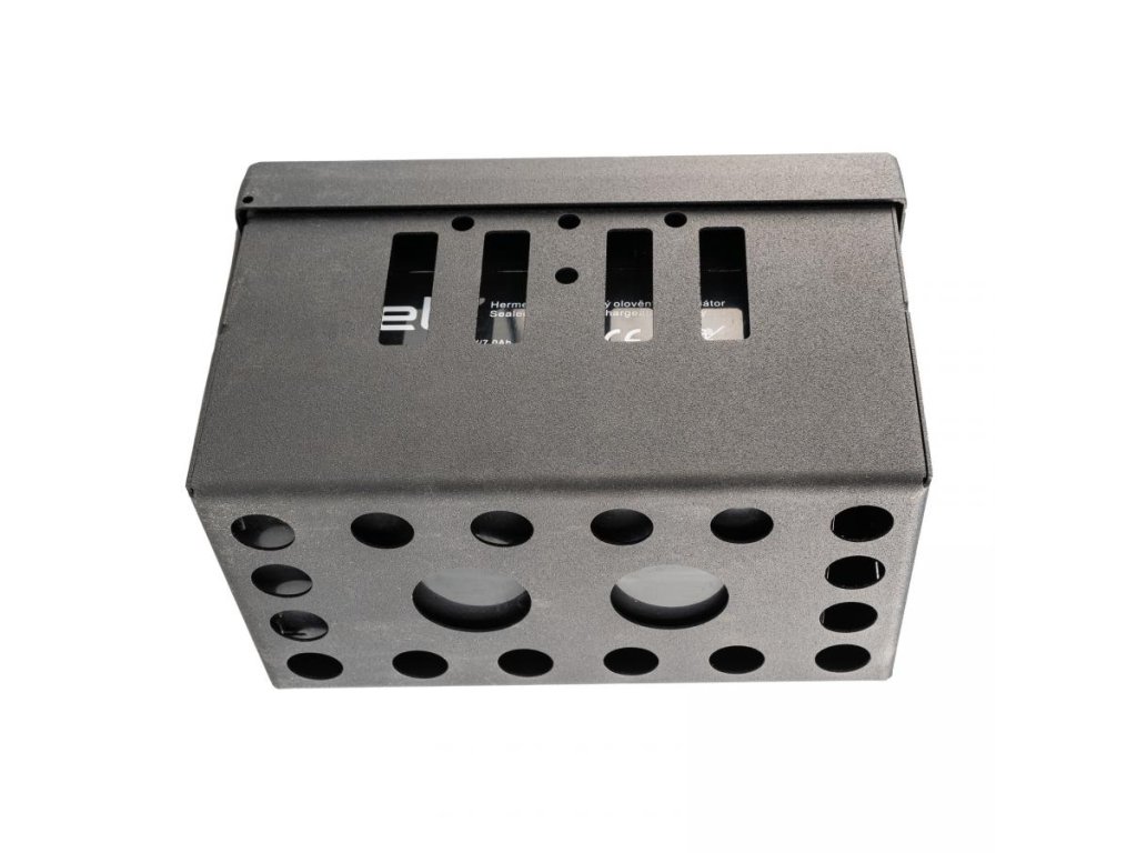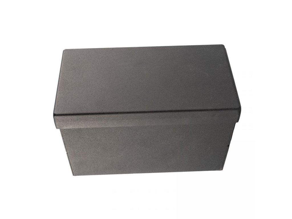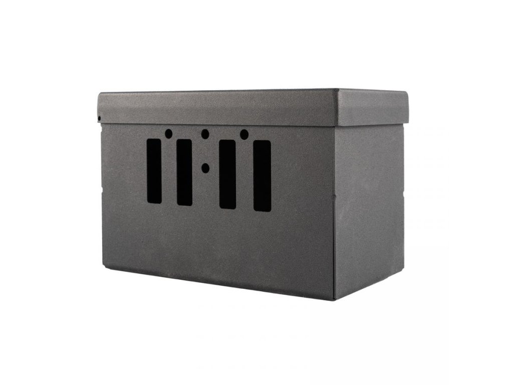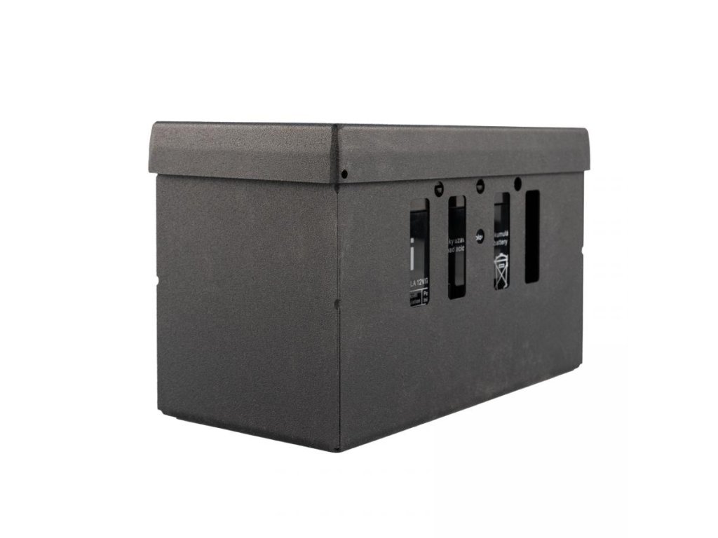 Ochranná kovová skříňka pro baterii 12V o vnitřních rozměrech 85*165*100 mm (d*š*h). Skříňka je nejlepší volbou pro ochranu baterie proti odcizení nebo vandalizmu. Kovová uzamykatelná skříňka na baterii 12V s možností kombinace s lanovým nebo visacím zámkem. Extrémně odolné provedení ze silného ocelového plechu s práškovým lakováním. Jedná se o českou precizní výrobu! Baterie není součástí ochranné kovové skříňky.